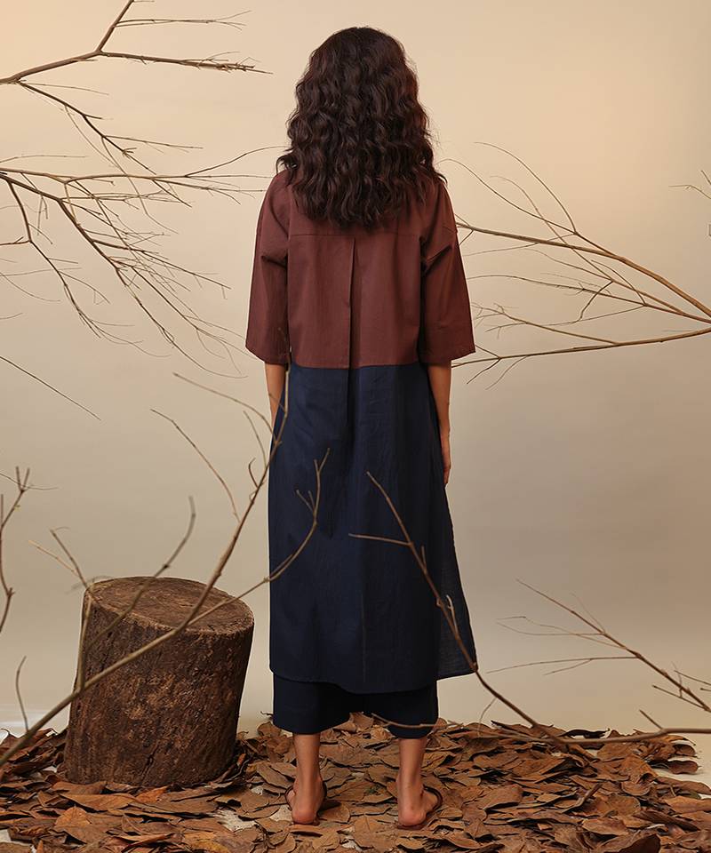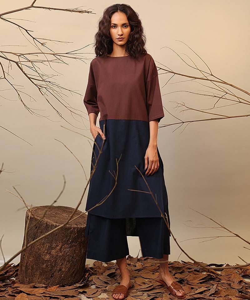 Brown and blue cotton kurta set