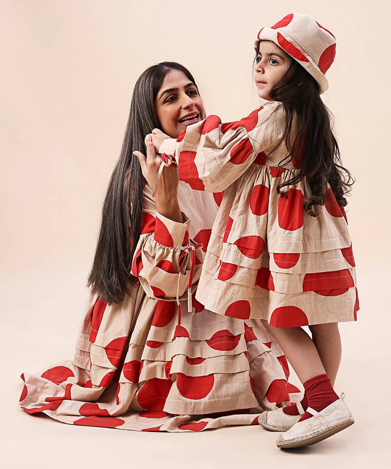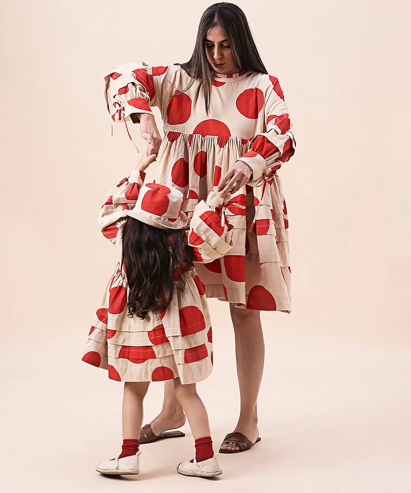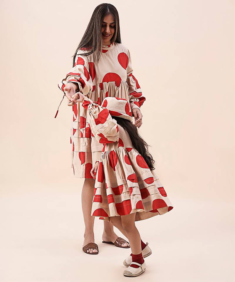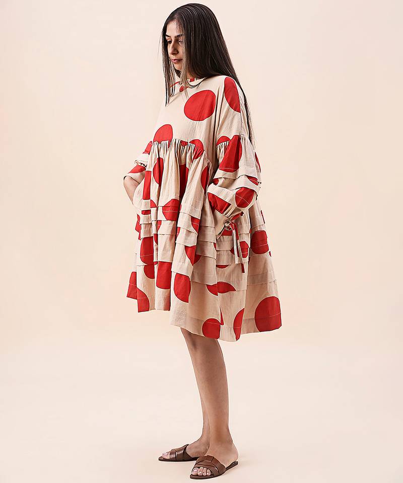 | Product Name | Red Printed Cotton Polka Short Dress | |