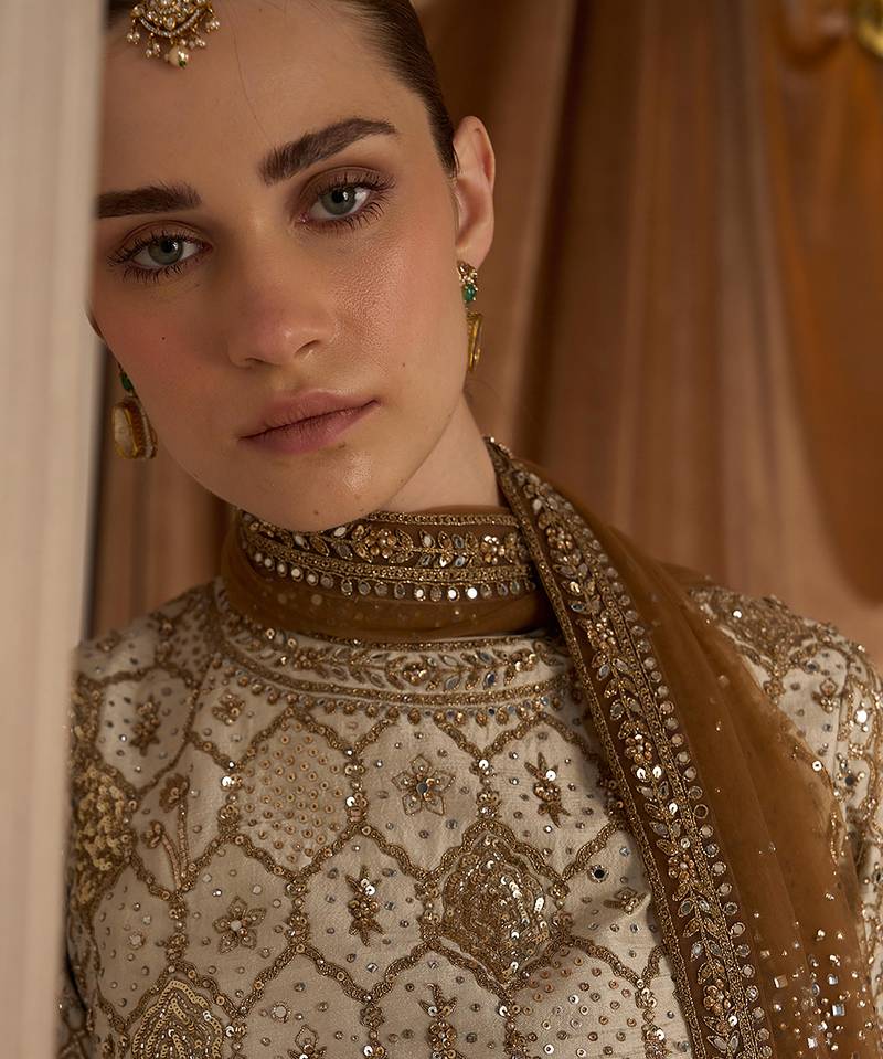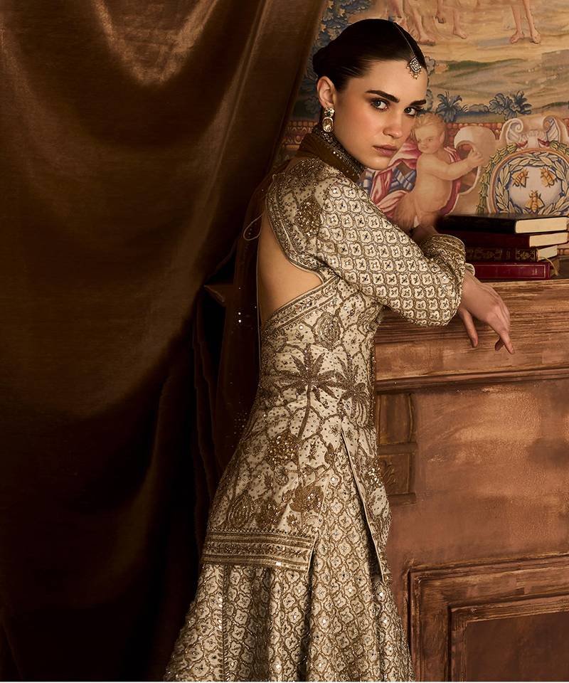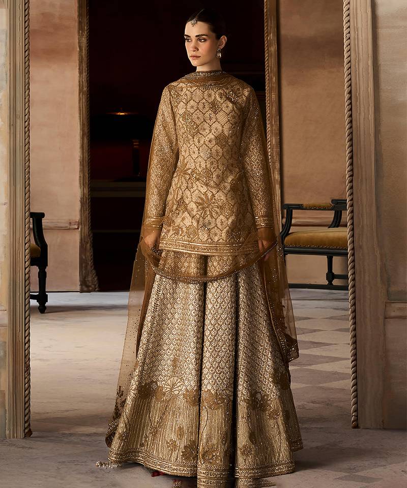 | Product Description | This Ekru Gold Embroidered Rambagh Silk Sharara Set Exudes Understated Luxury With Its Soft Hue And Intricate Gold Detailing. The Rich Silk Fabric Adds Depth And Elegance, While The Flared Sharara Enhances Movement. Perfect For Weddings And Festive Occasions, It Offers A Refined Blend Of Tradition And Contemporary Grace.