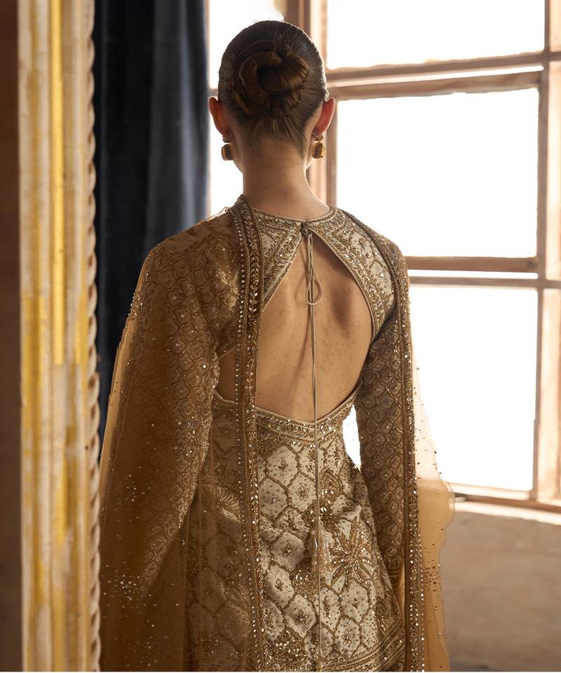 | Product Name | Ekru Gold Embroidered Rambagh Silk Sharara Set | |