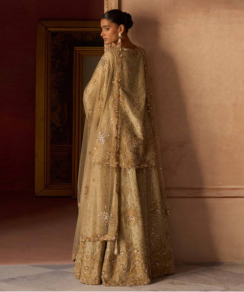 | Product Name | Gold Embroidered Tissue Silk Sharara Set | |