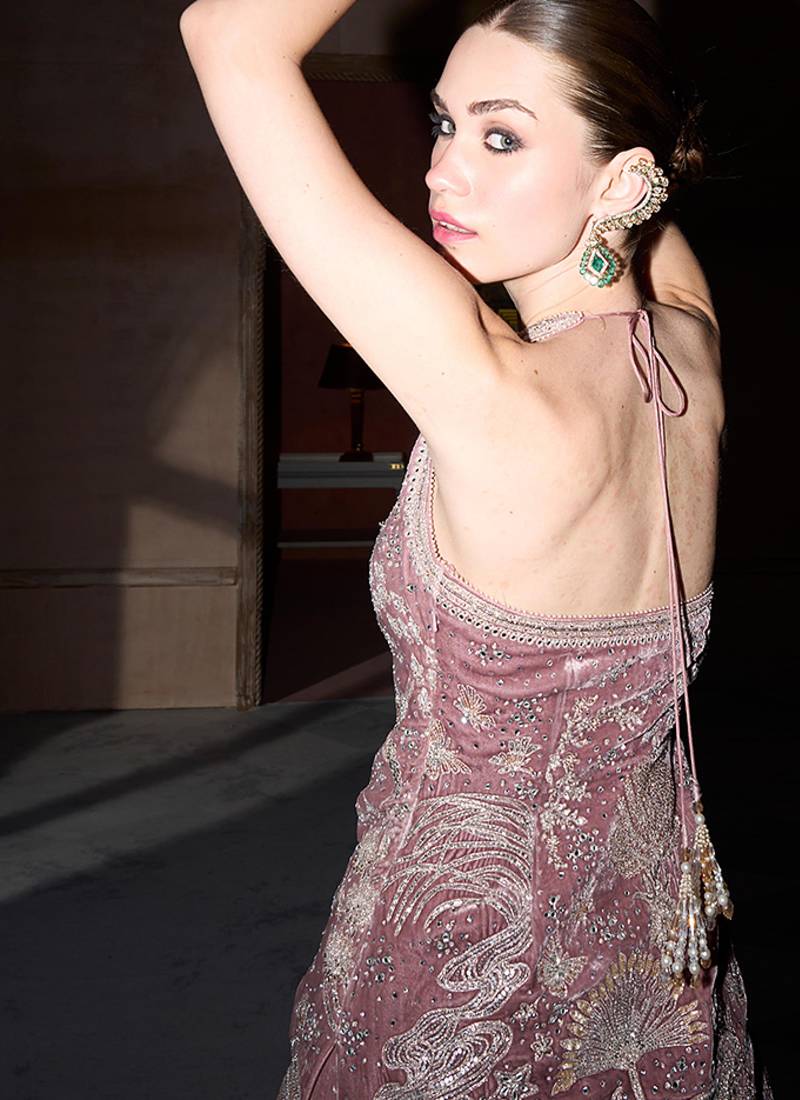 | Product Description | This Rose Pink Embroidered Velvet Silk Sharara Set Combines Plush Texture With Delicate Detailing. The Rich Fabric Adds Depth And Luxury, While The Flared Silhouette Enhances Its Charm. Ideal For Evening Events, It Offers A Graceful And Sophisticated Appearance.