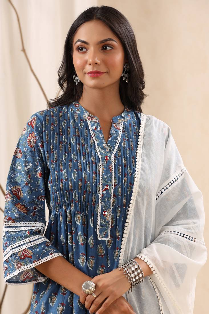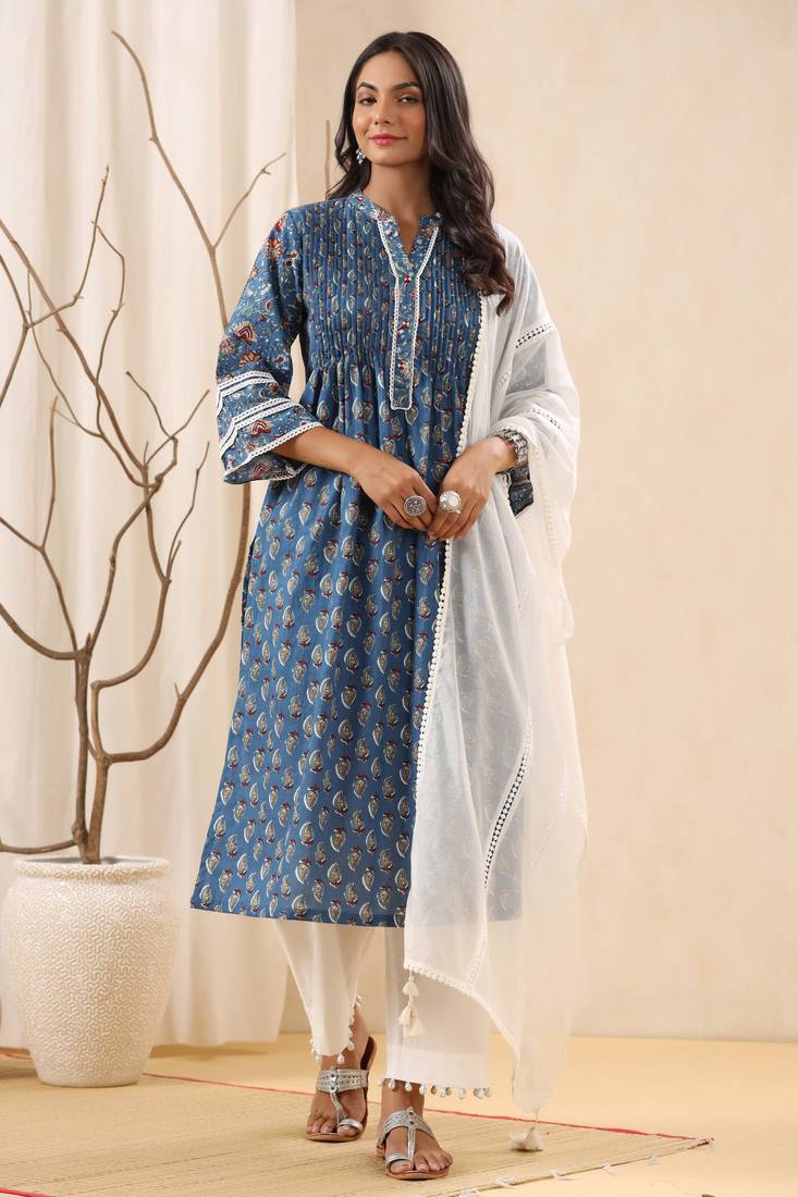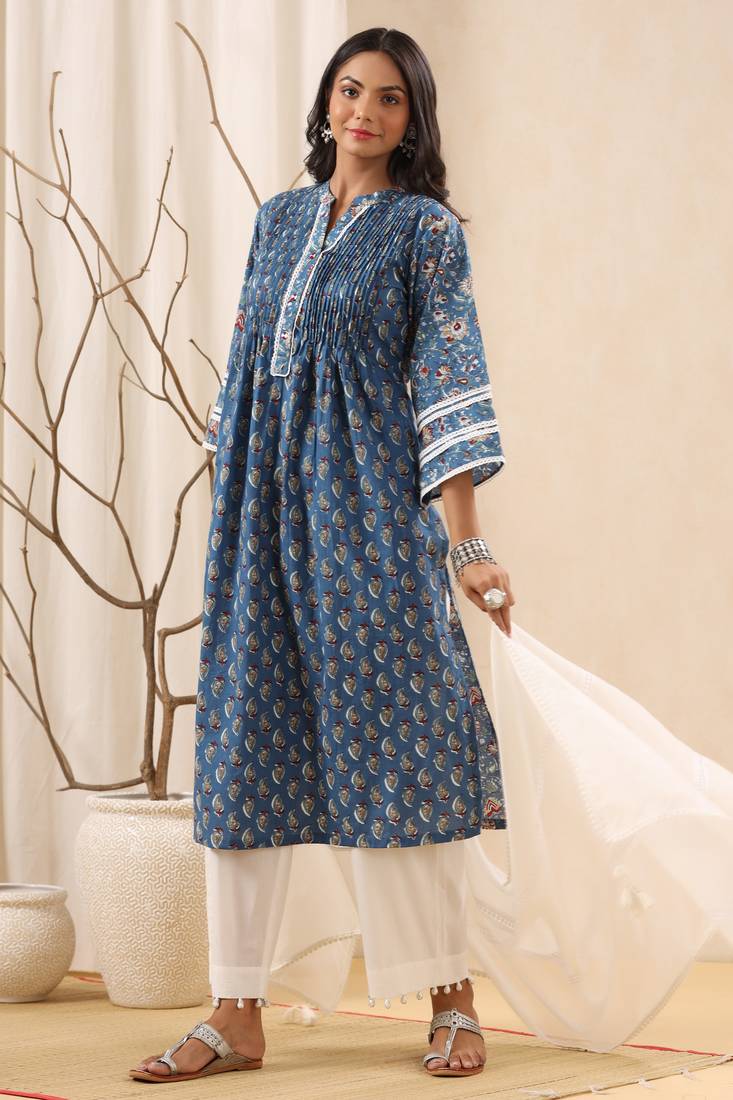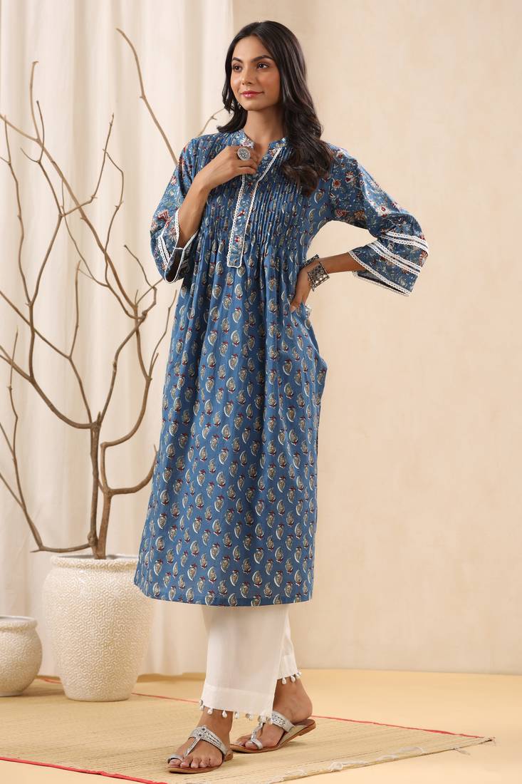 | Product Name | Blue Printed Pintucked Detailing Cotton Kurta | |