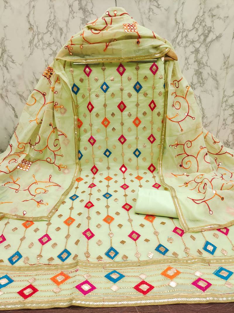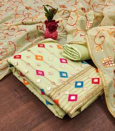 Zeepkart green chanderiSilk embroidered dressmaterials unstitched salwar suit