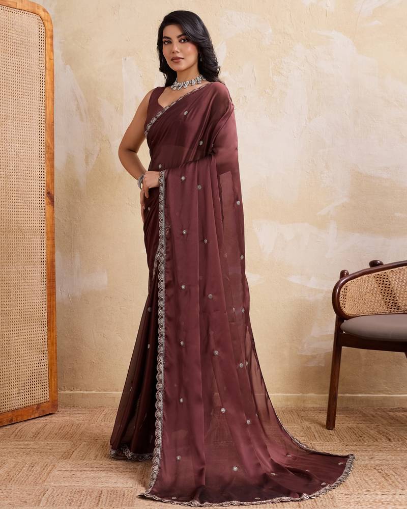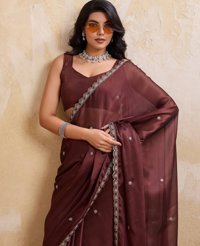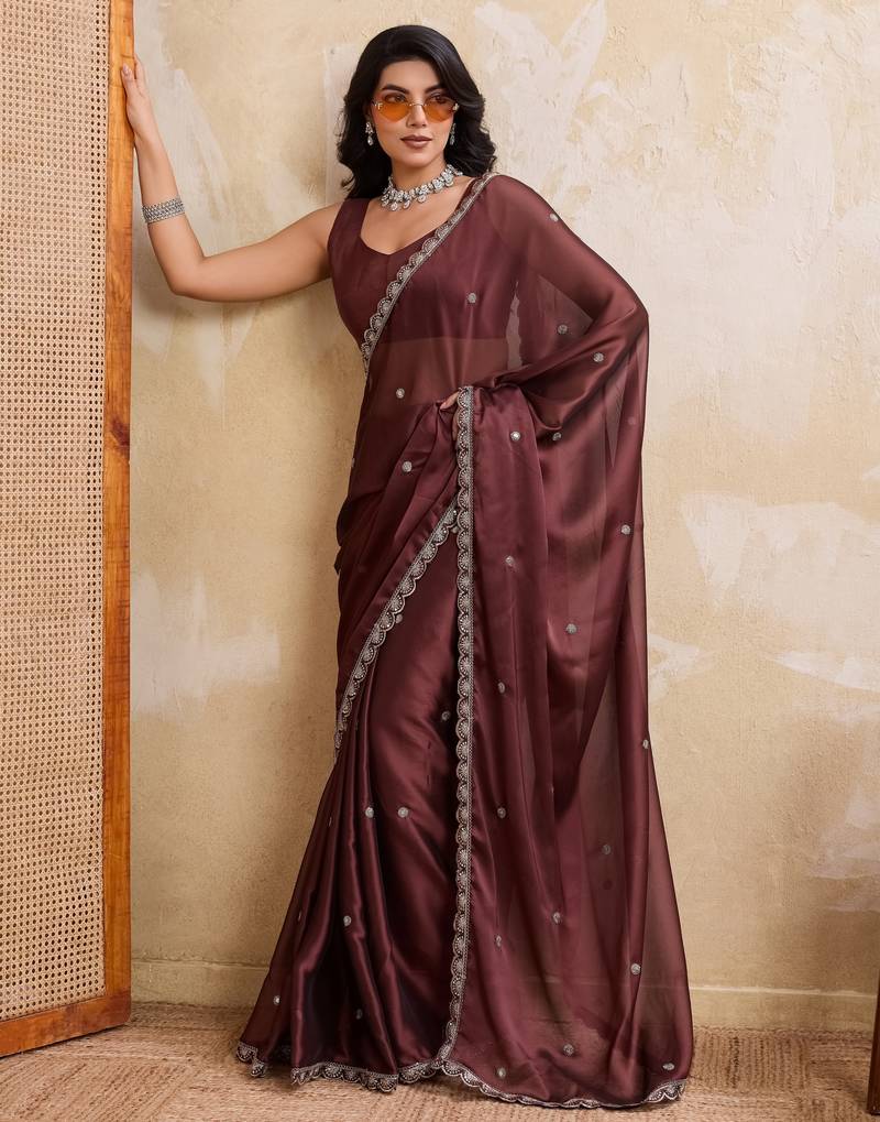 | • | Saree | : | Color- Brown / Fabric- Art Silk |
