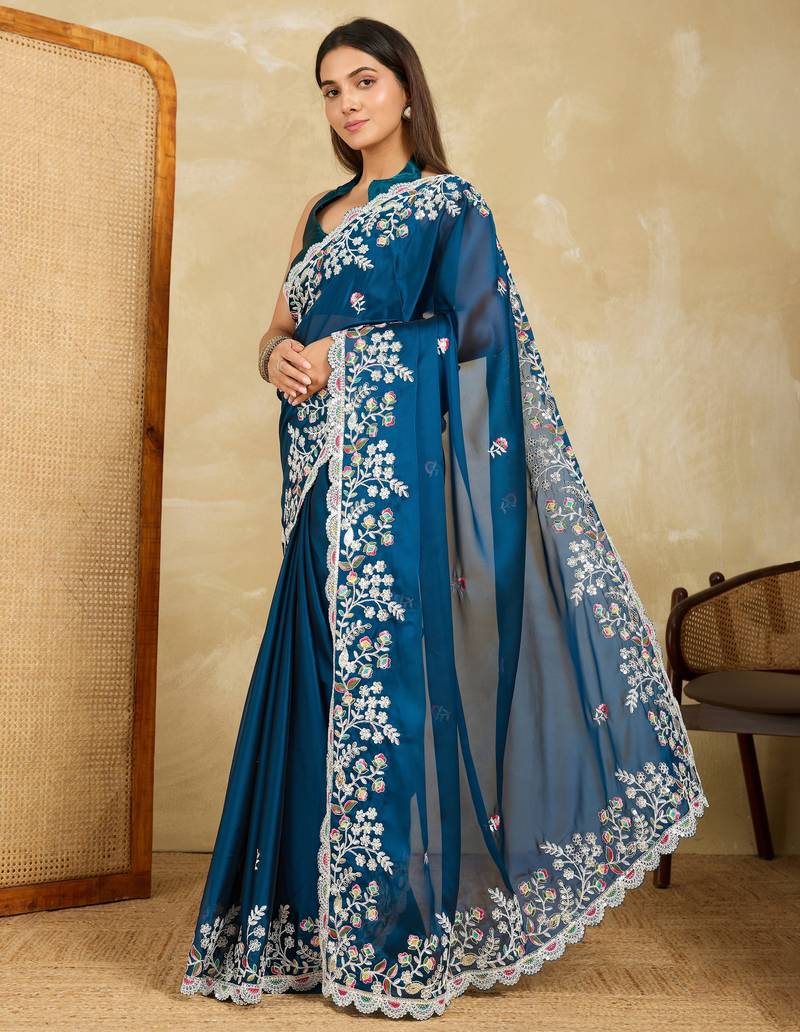 | • | Saree | : | Color- Teal / Fabric- Silk Blend |