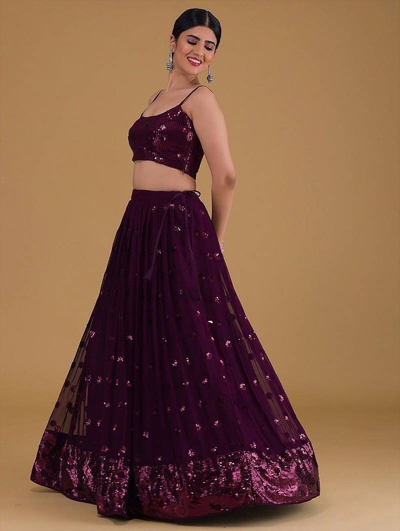 | Product Description | Introducing Our Awesome Purple Sequins Georgette Sangeet Wear Lehenga Choli, Perfect For Receptions And Parties.
