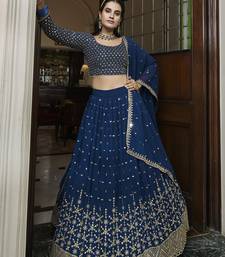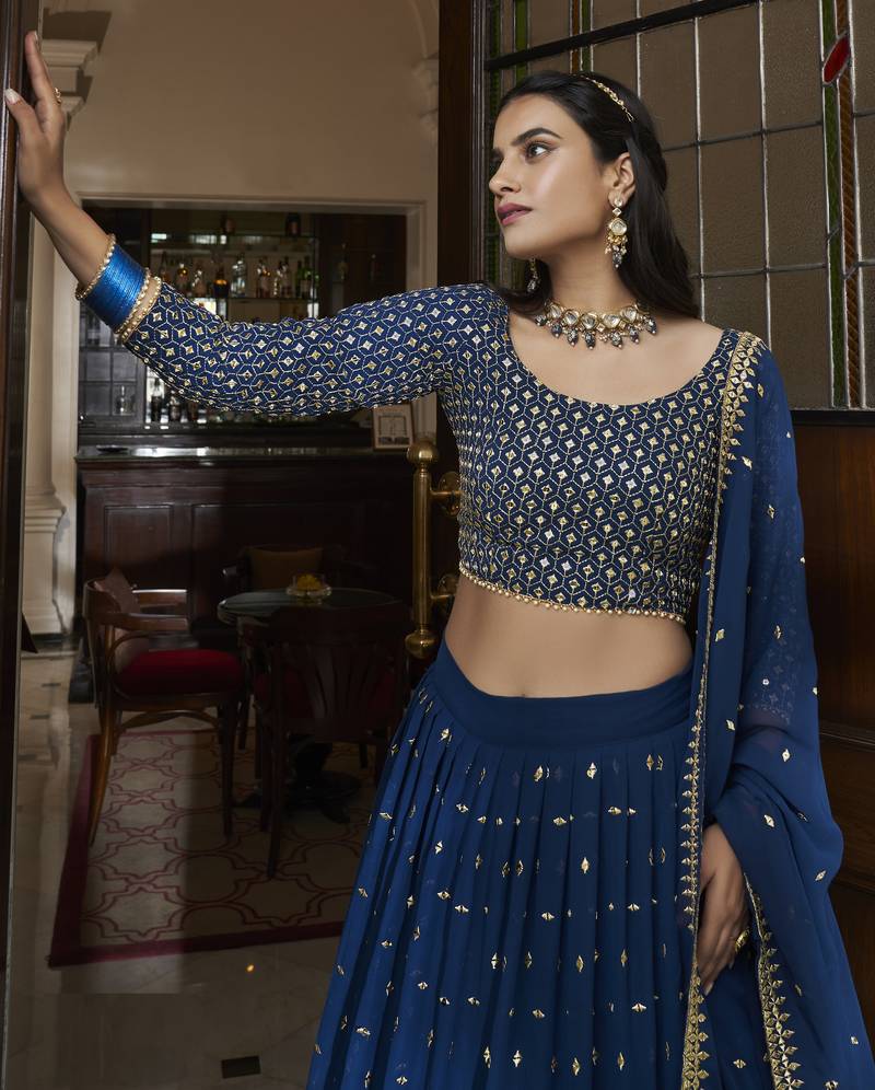 Blue zari and sequins emboidered georgette semi stitched lehenga choli for wedding