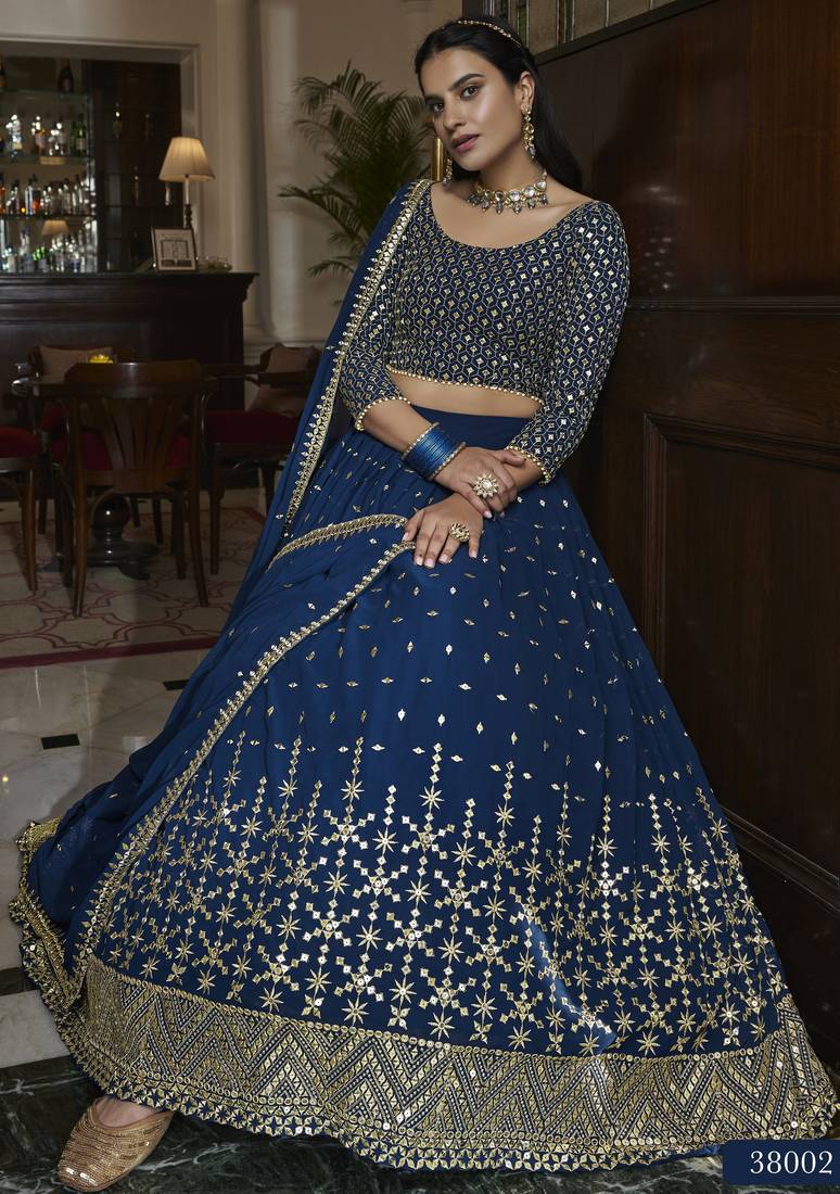 | Product Name | Blue Zari And Sequins Emboidered Georgette Semi Stitched Lehenga Choli For Wedding | |