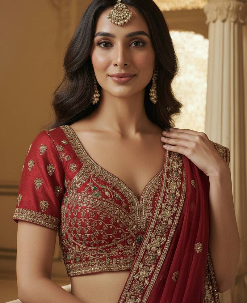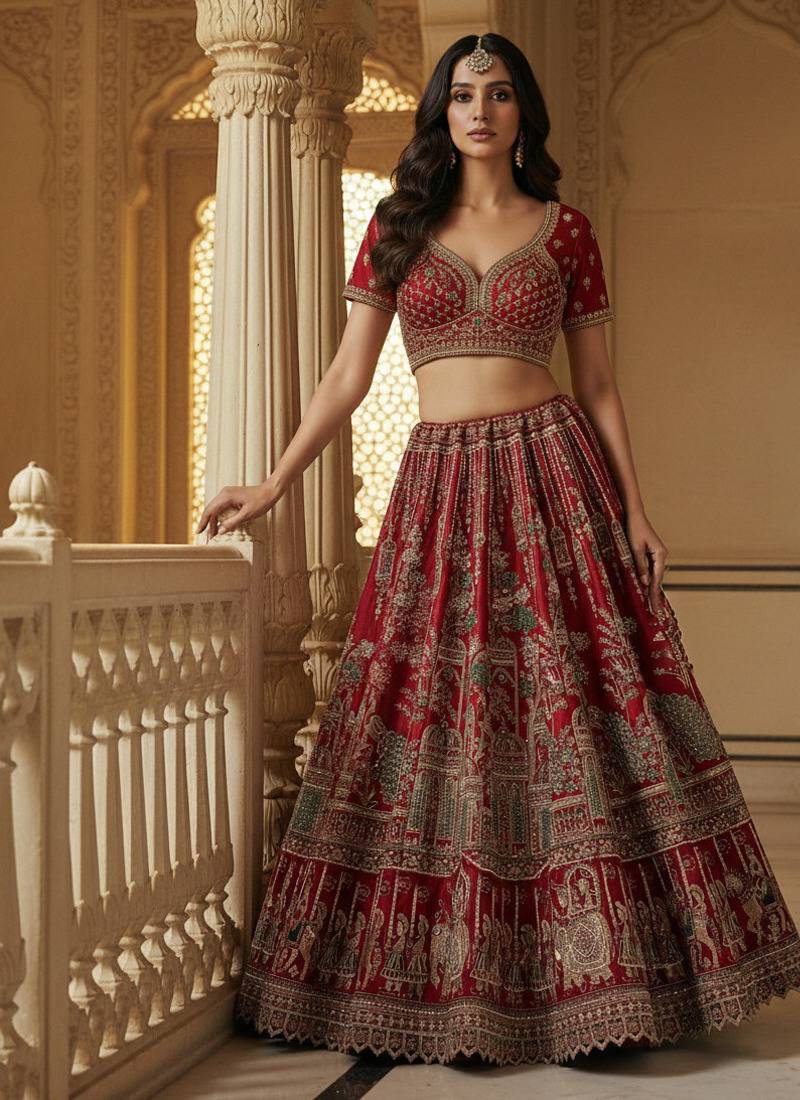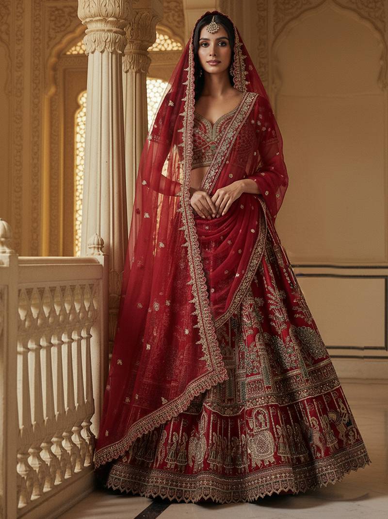 | Product Name | Captivating Red Handwork Motif, Handwork Beads, Multi Thread, Dori, And Sequin Embroidered Silk Designer Lehenga Choli | |