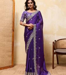 Captivating red rangoli silk sequins embroidered indain festival saree