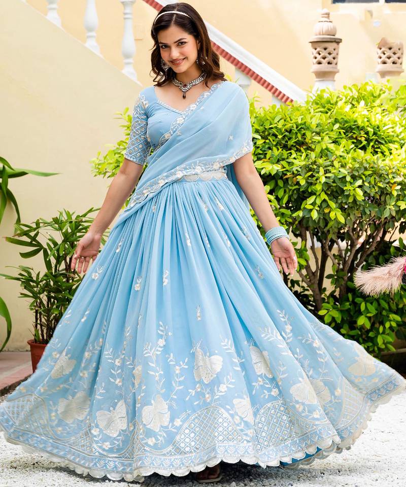 Captivating sky-blue multi sequence, embroidery faux georgette indian wedding designer lehenga choli