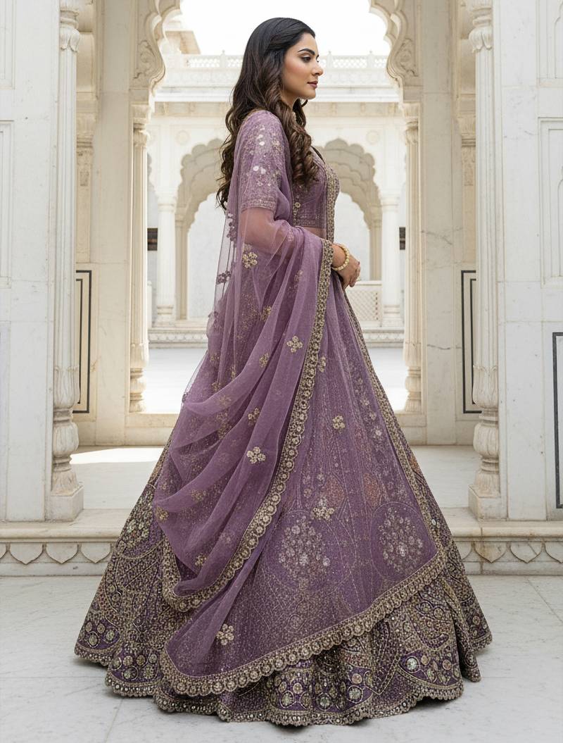 | Product Name | Charming Onion Zari Zal, Multi Thread, Dori, Metalic Sequins, Diamond Work Orgenza Wedding Wear Lehenga Choli | |