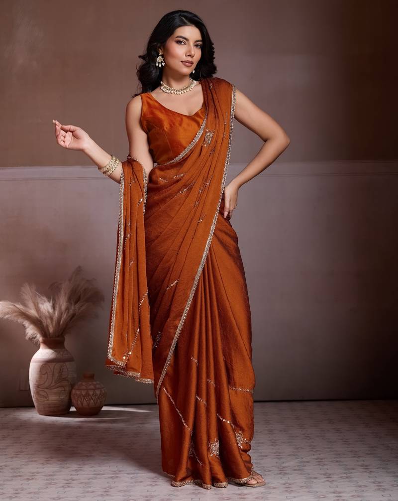 | • | Saree | : | Color- Rust / Fabric- Art Silk |