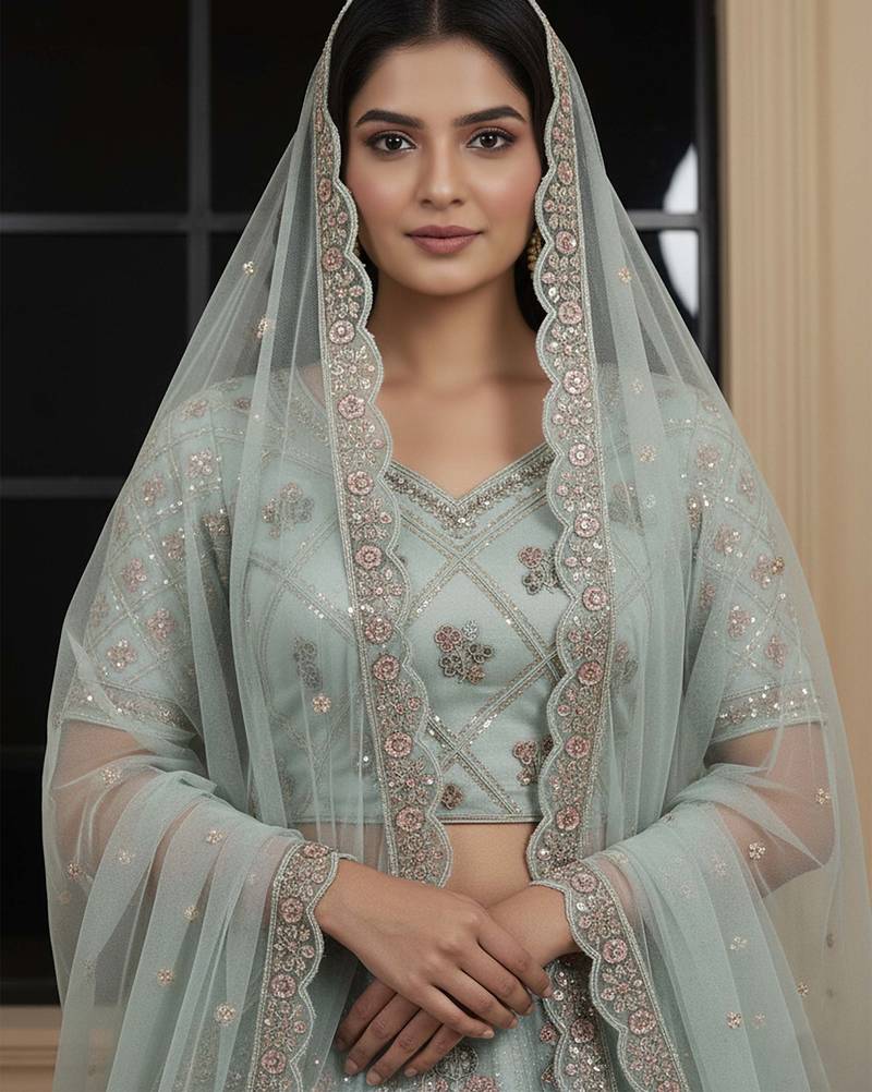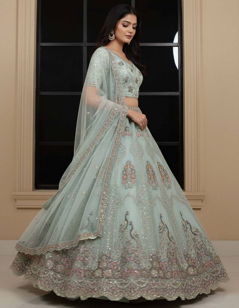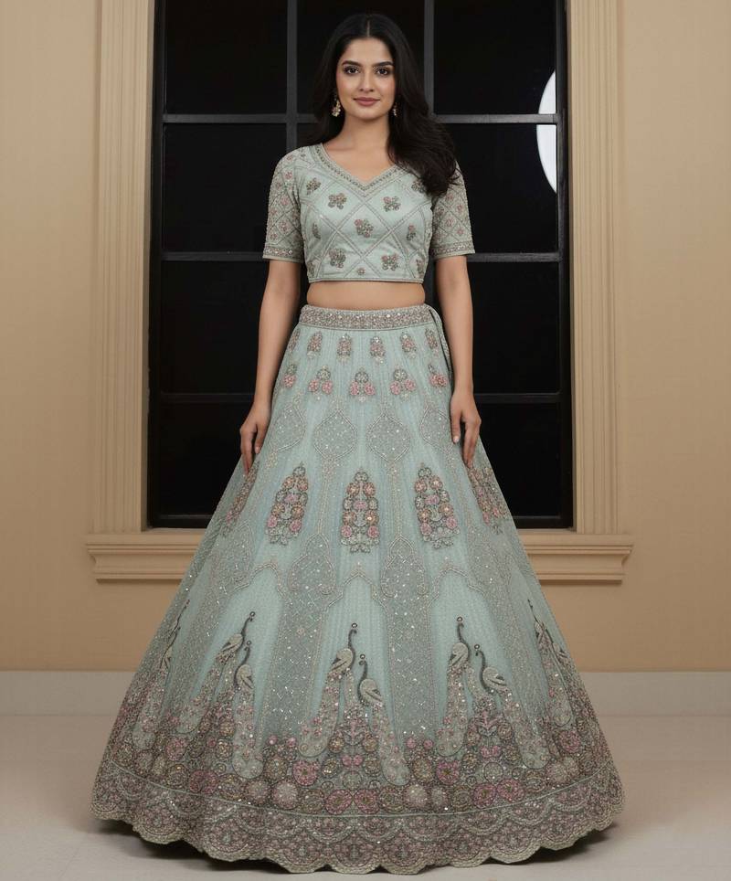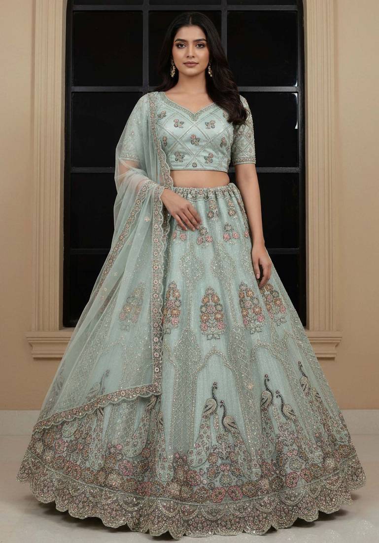 | Product Name | Colorful Sky Dori Work, Multi Thread And Sequins, Chapat Zari Work, Diamond Work Heavy Net Bridal Wear Lehenga Choli | |