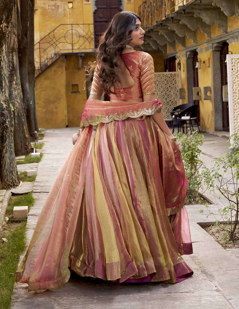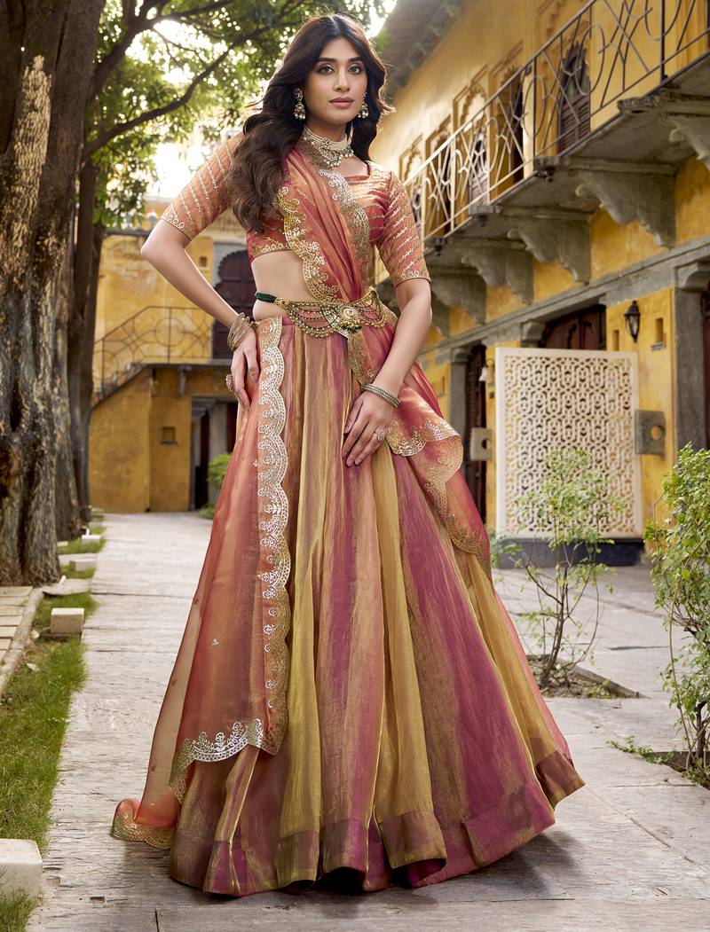 Delightful dusty rose carika silk indian wedding lehenga choli dress