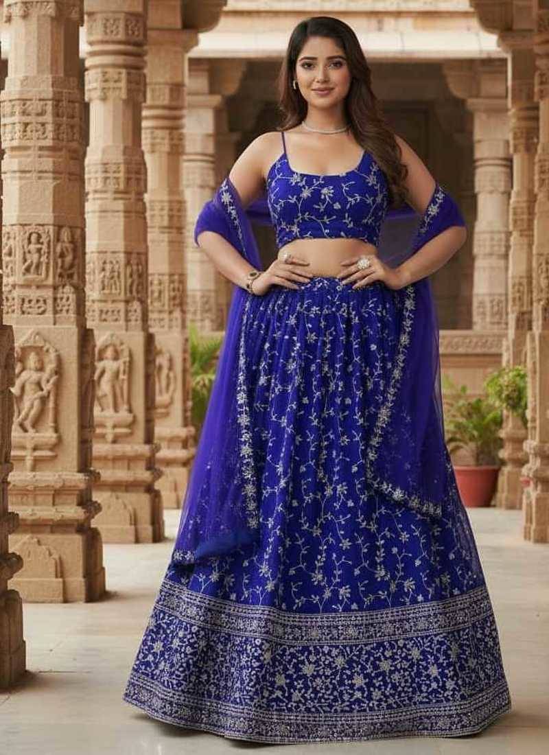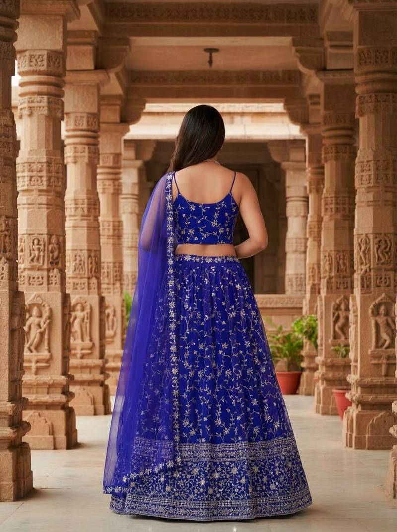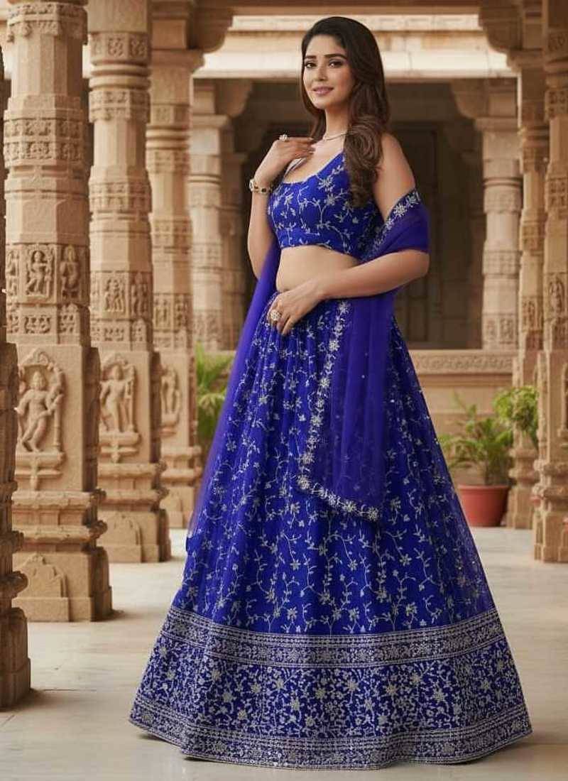 | Product Name | Enchanting Blue Zari, Sequence Embroidered Georgette Indian Wedding Designer Lehenga Choli | |