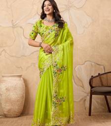 | • | Saree | : | Color- Parrot Green / Fabric- Silk Blend |