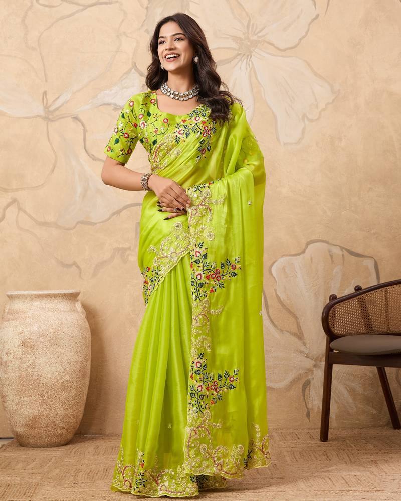 | • | Blouse | : | Color- Parrot Green / Fabric- Silk Blend |