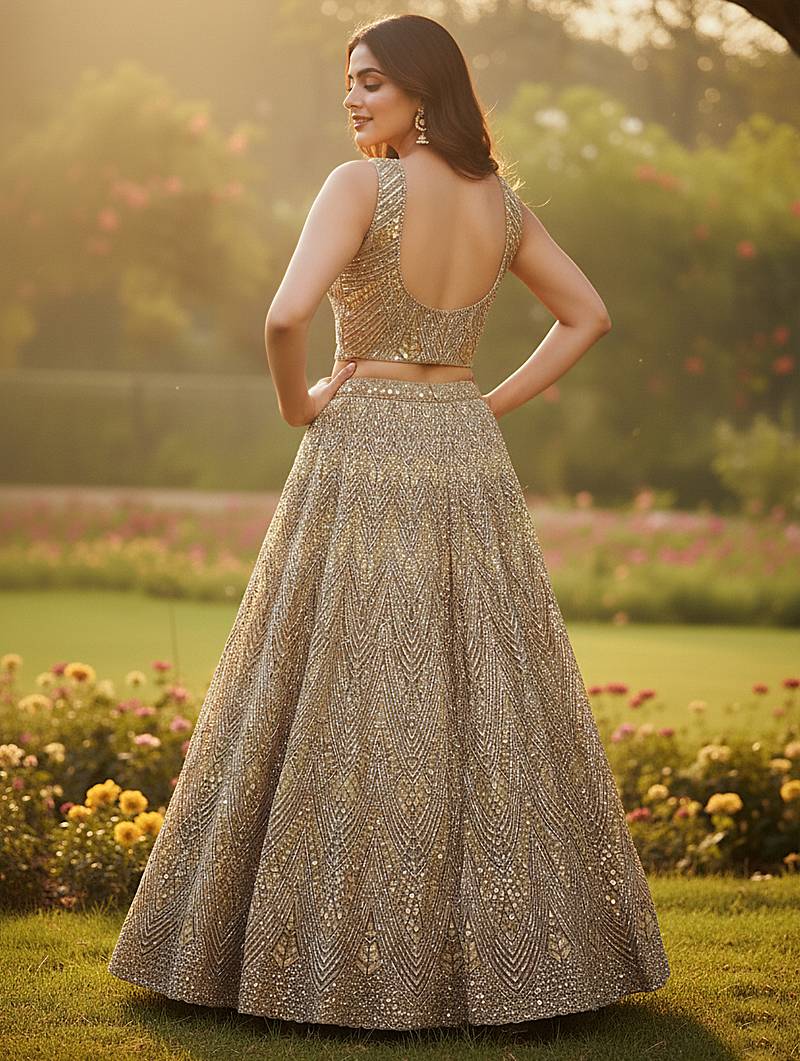 | Product Name | Intriguing Golden Fancy Pattern, Sequins, Dori Embroidered, Zircon Diamond Studded Net Wedding Lehengas For Women | |