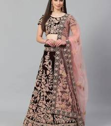 Maroon & peach-coloured embroidered semi-stitched lehenga & unstitched blouse with dupatta