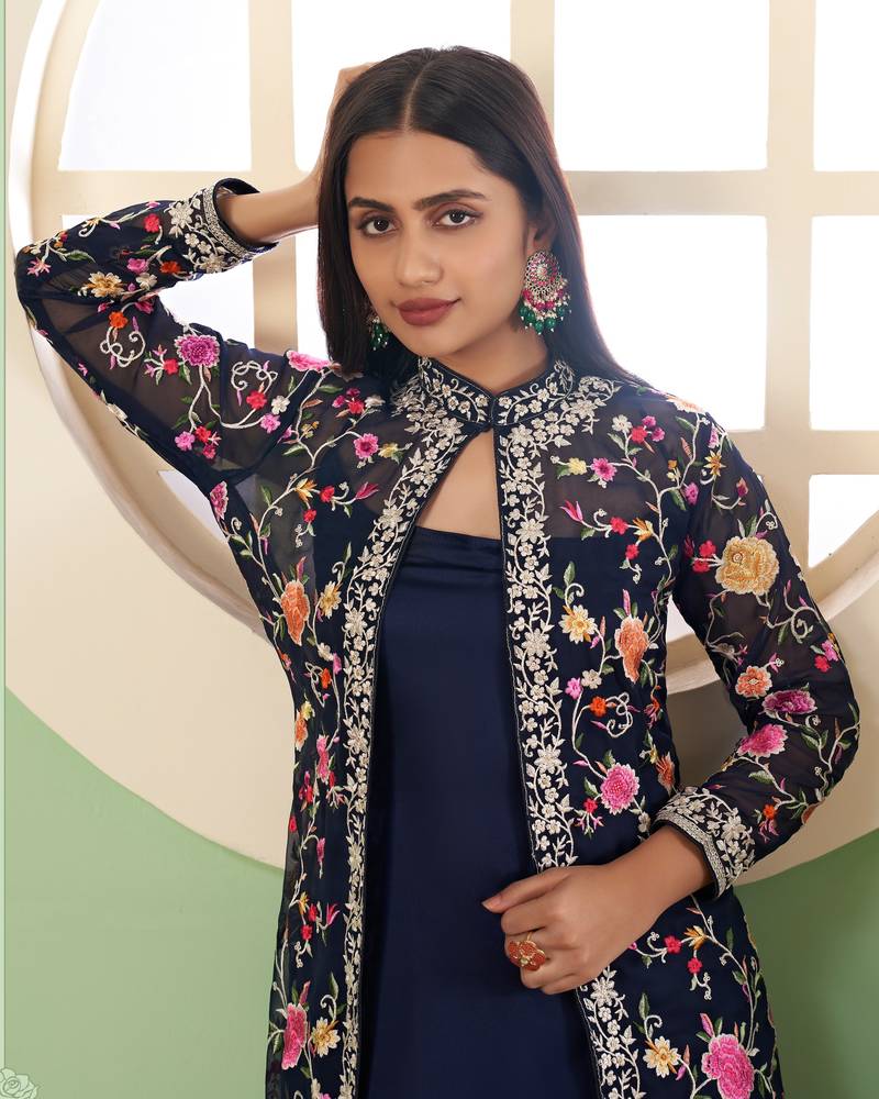 Colorful navy blue sequins embroidered georgette indian salwar kameez semi stitched
