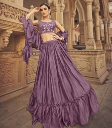 Purple thread embroidered with mirror work chinon semi stitched lehenga choli for women
