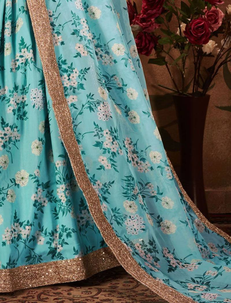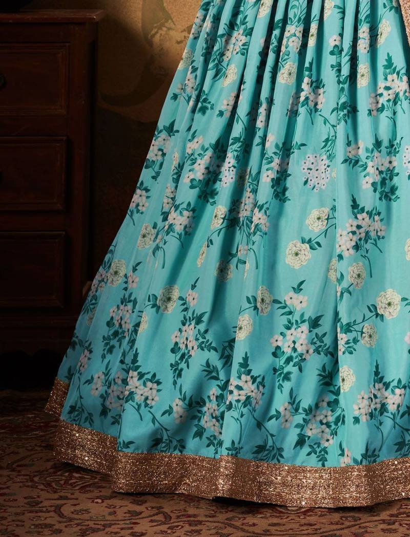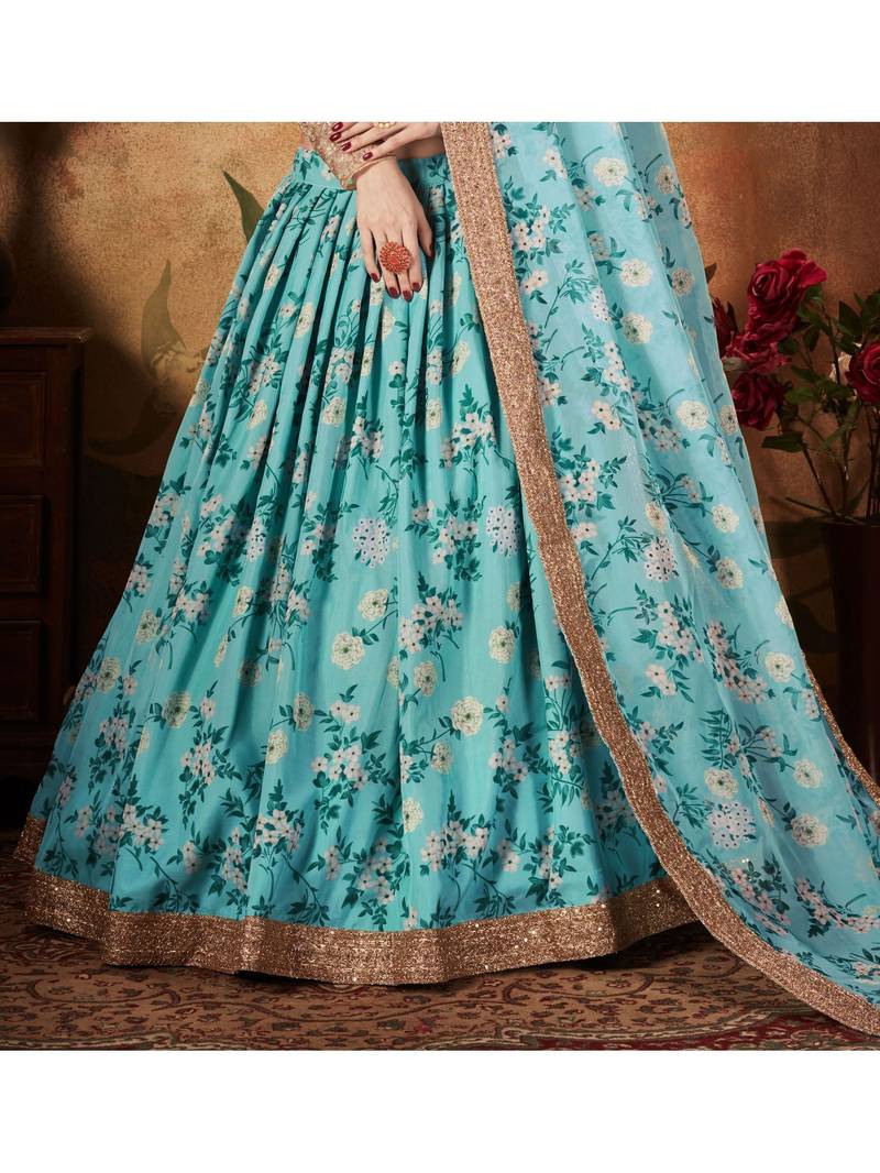 | Product Description | Look Super Gorgeous In This Sky Blue Flared Blue Colored Organza Silk Bridal Sabyasachi Designer Girlish Lehenga Beautified With Floral Digital Print All Over.
