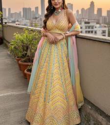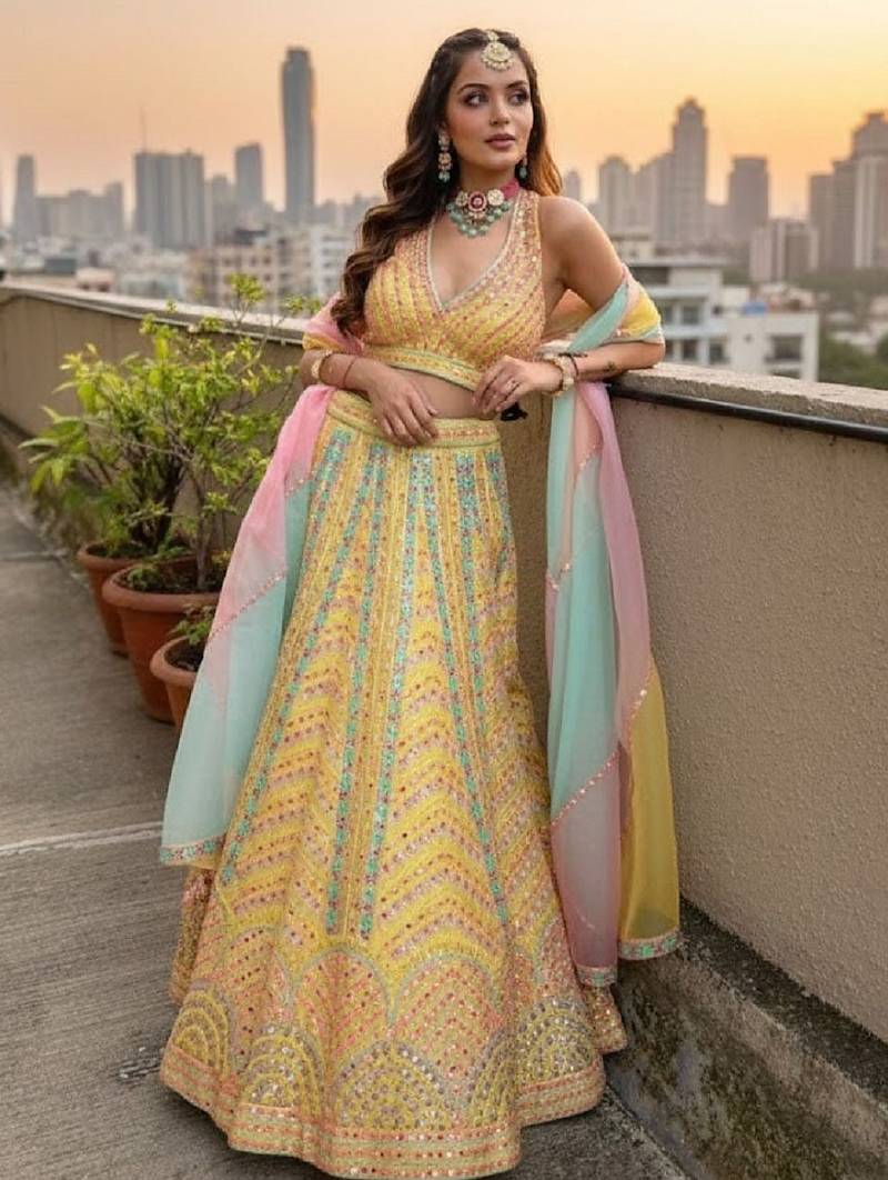| Product Name | Yellow Dolo Silk With Heavy Fusing Thread Zari And Sequins Embroidered Indian Wedding Lehenga Dress Designs | |