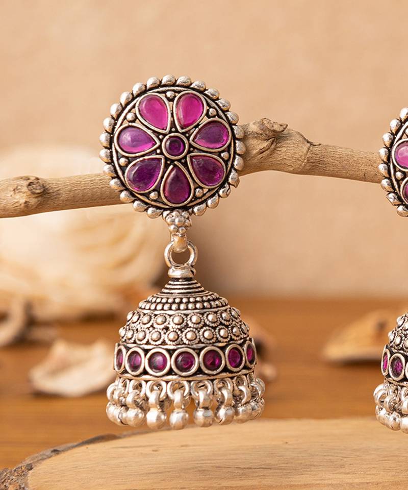 | Product Name | Silver Finish Pink Beaded Jhumka Earrings | |