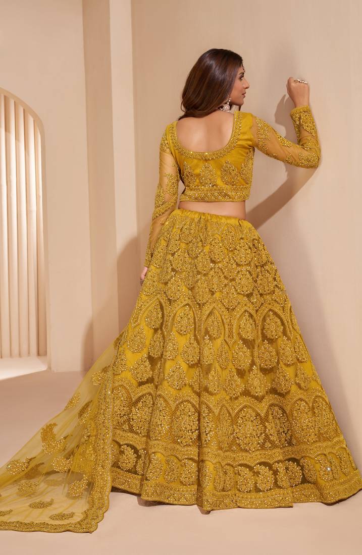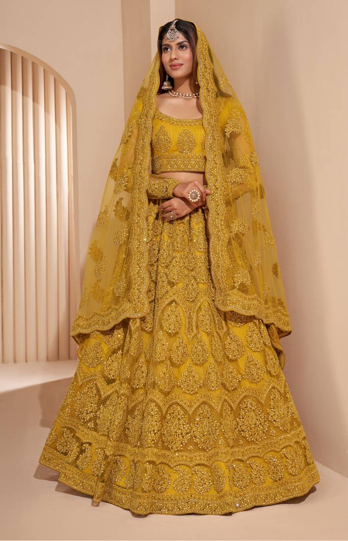 | Product Name | Mustard Thread Embroidery Net Semi Stitched Lehenga | |