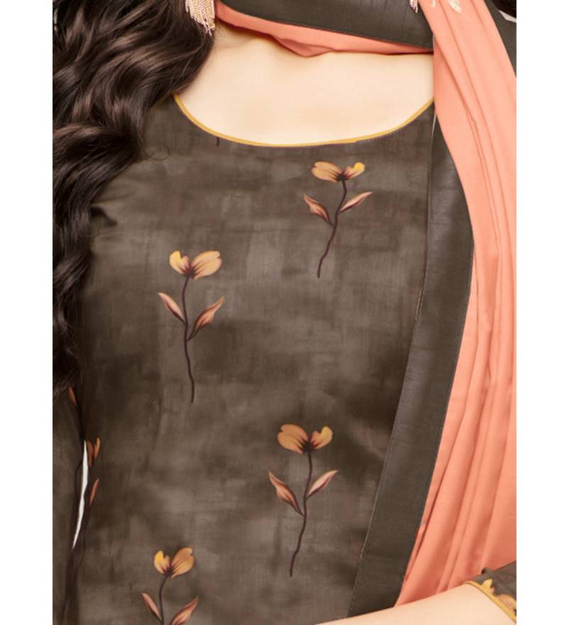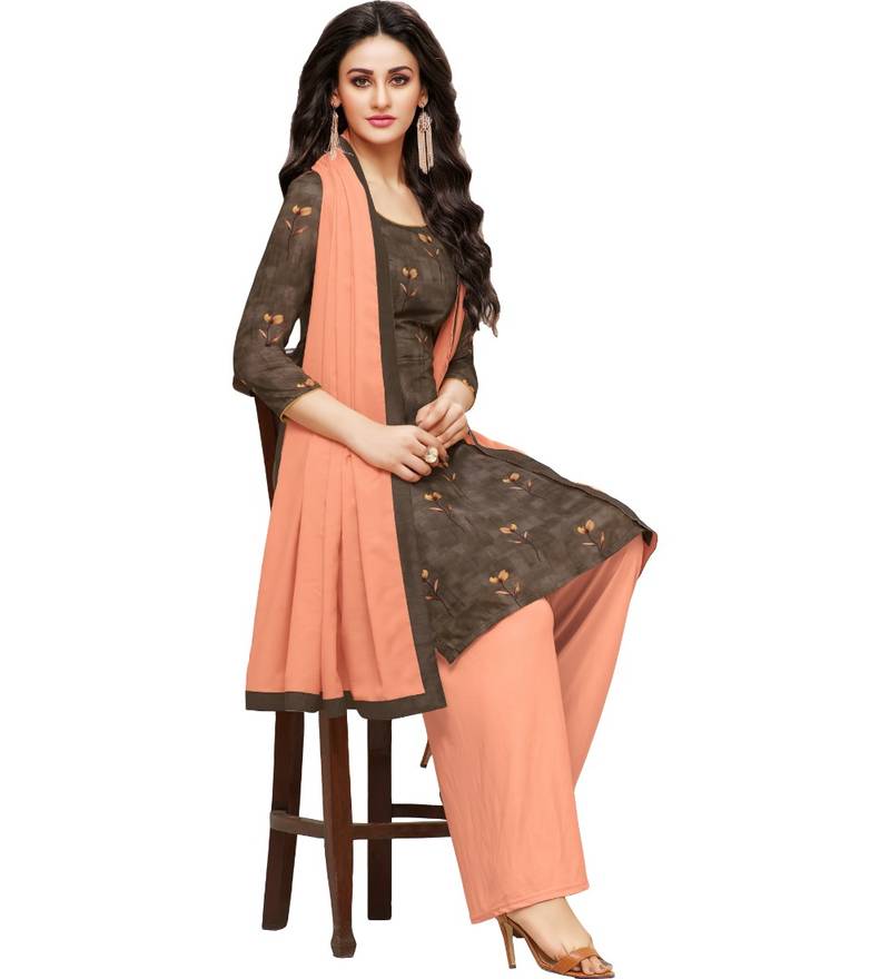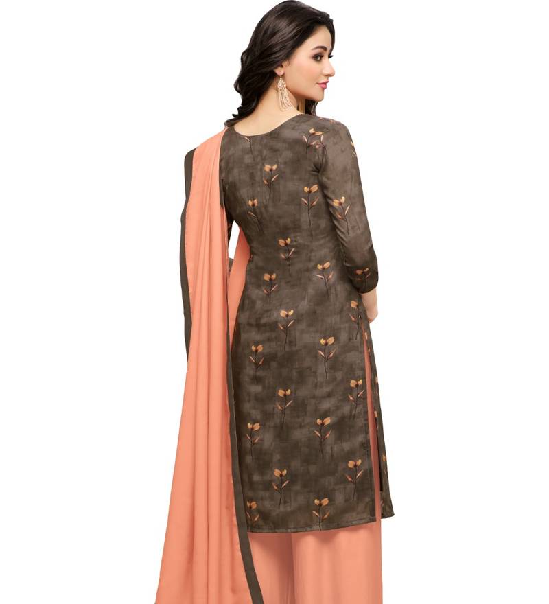 Brown & peach mashlin silk printed women's palazzo suit semi stitched