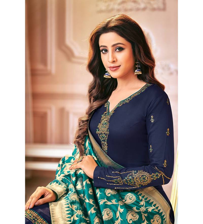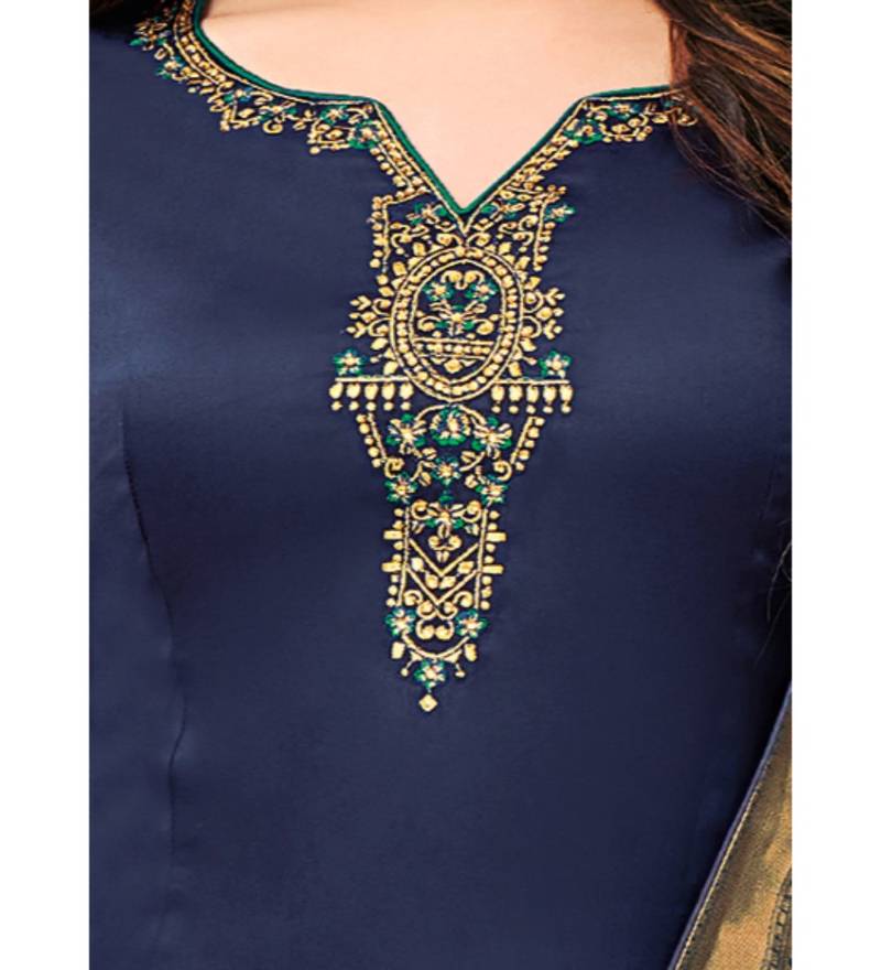 | Product Name | Navy Blue & Teal Cotton Jam Silk Women's Salwar Suit With Banarasi Dupatta | |