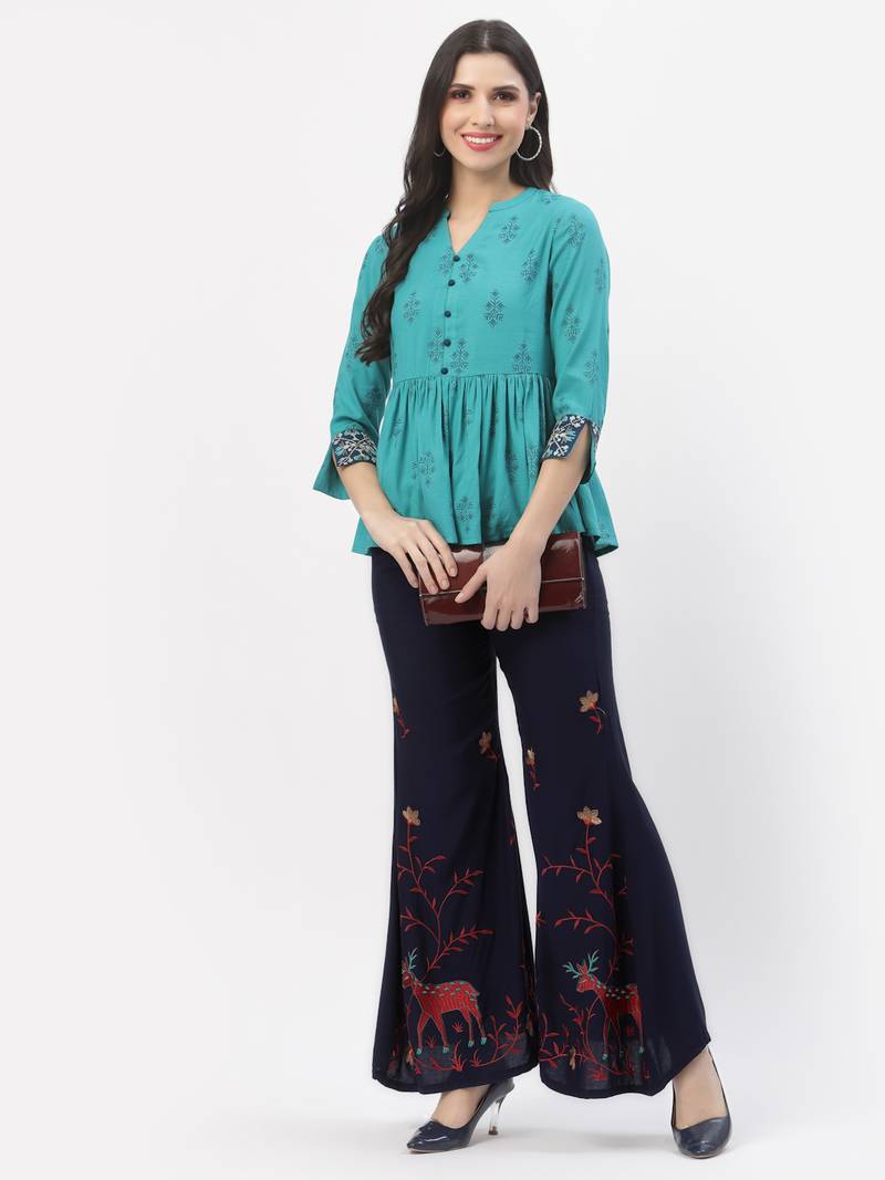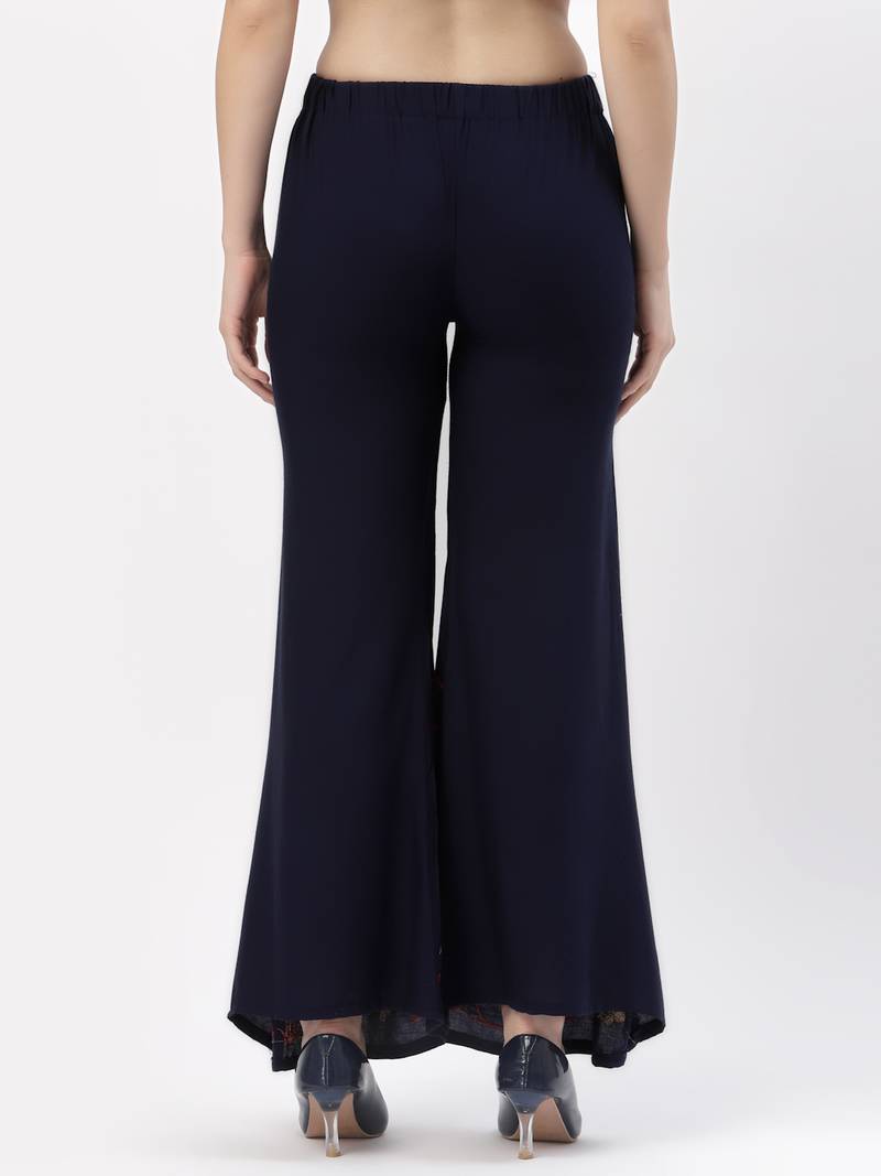Navy blue rayon embriodered stitched palazzo