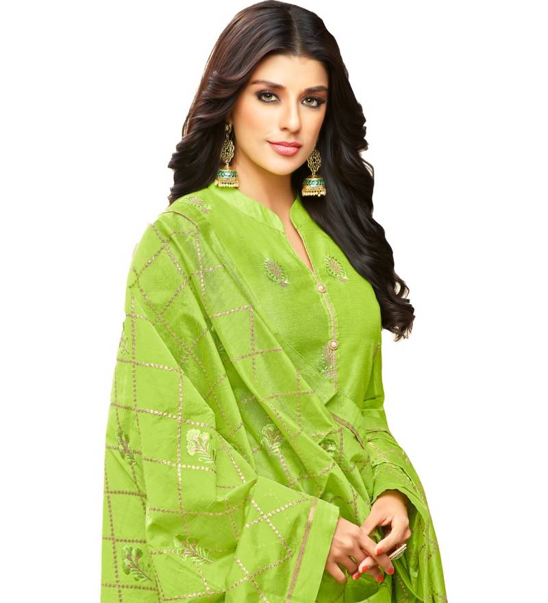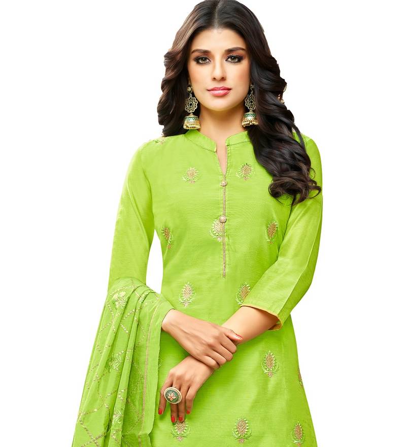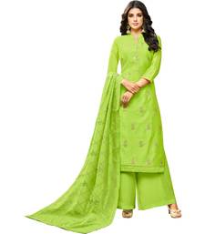 Parrot green chanderi women's palazzo suit with heavy embroidered dupatta unstitched