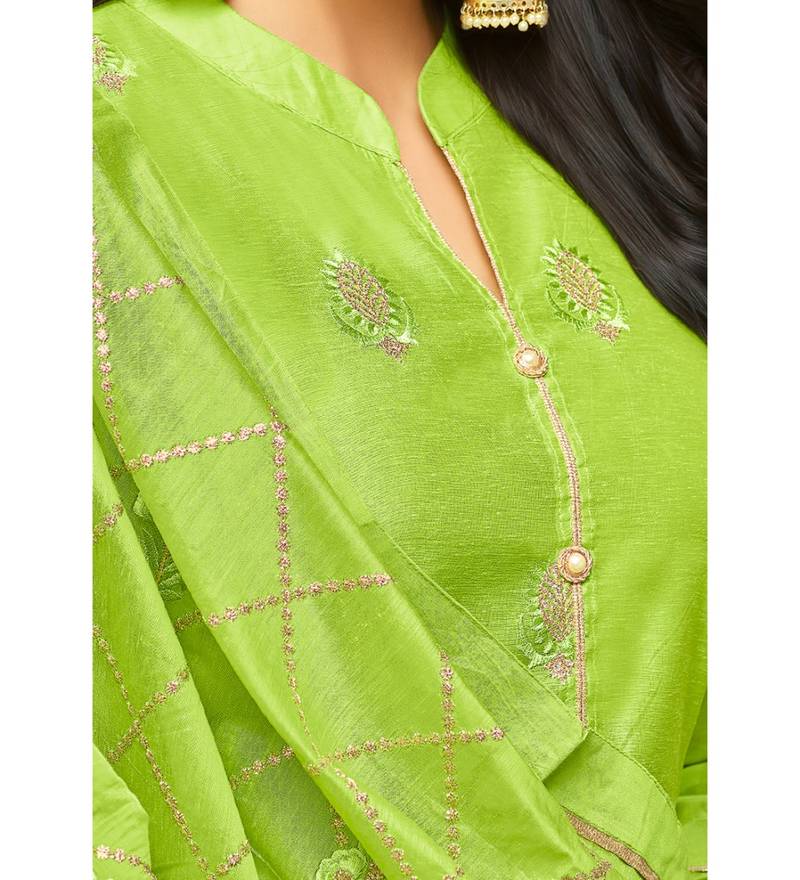 Product Name | Parrot Green Chanderi Women's Palazzo Suit With Heavy Embroidered Dupatta | |
