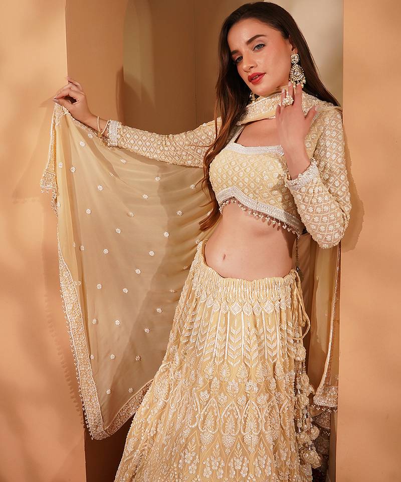 | Product Name | Beige Georggete Lehenga Set With White Sequin And Cutdana Work | |