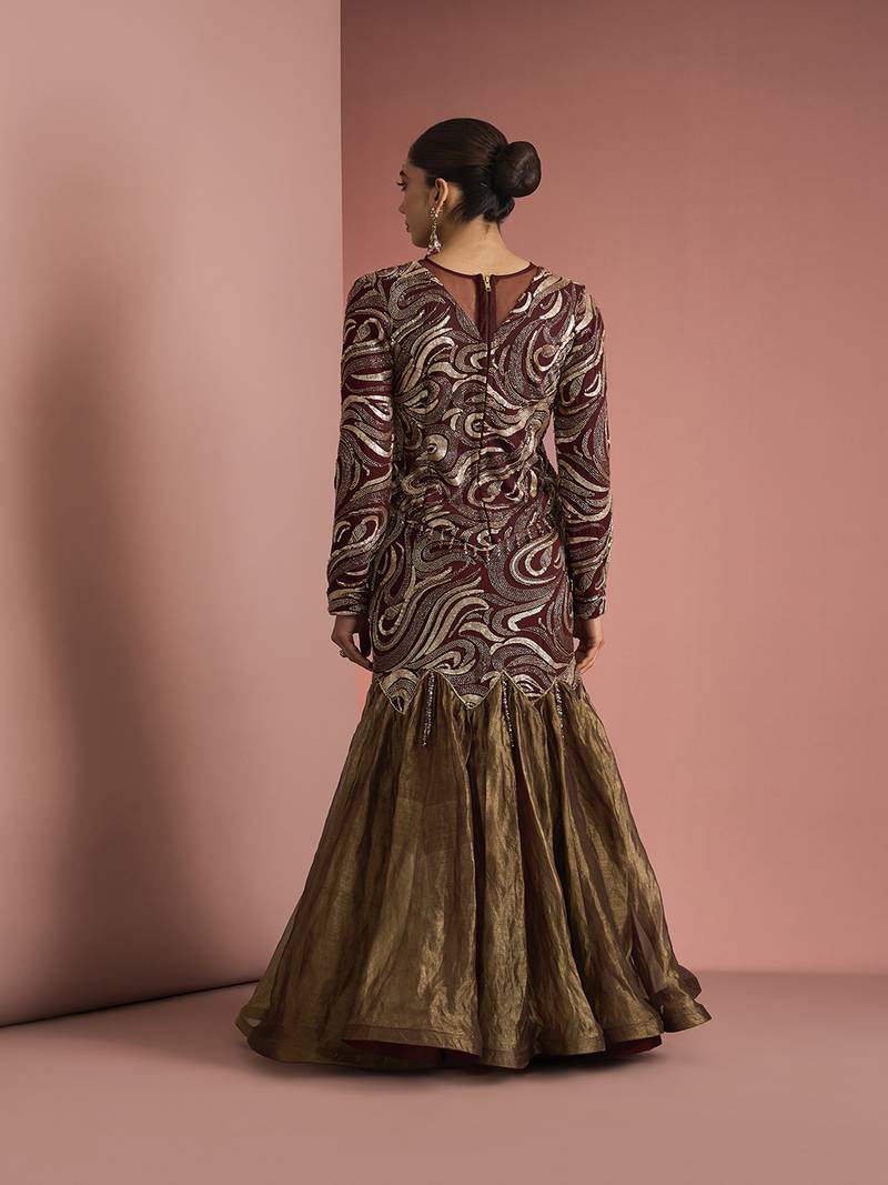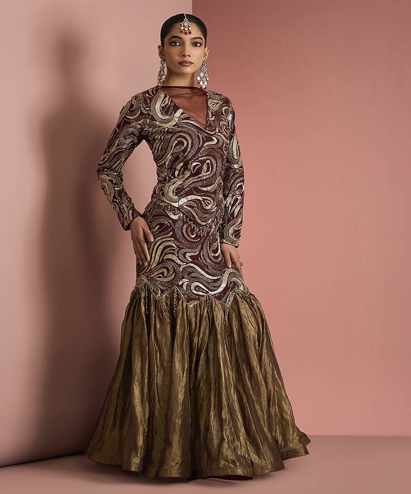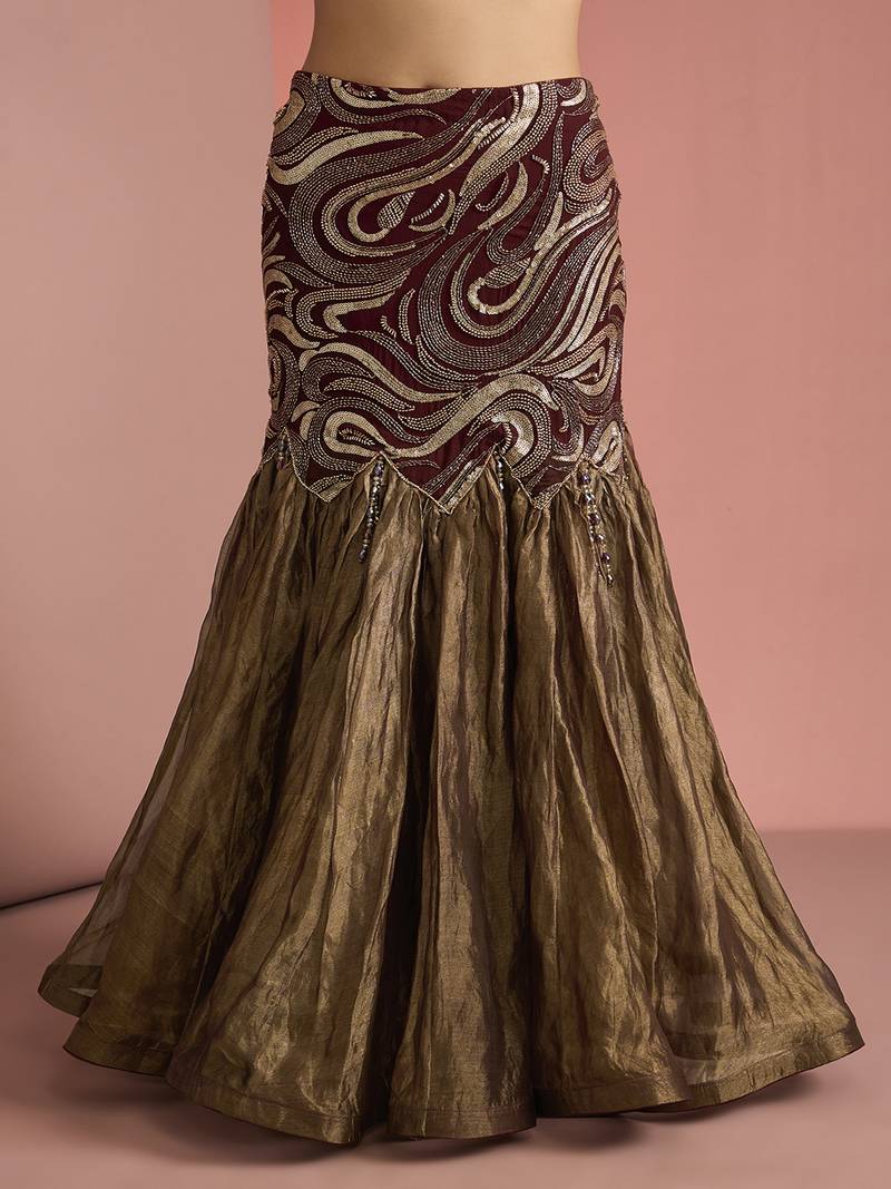 | Product Name | Dark Brown Pure Tissue Fish Cut Skirt And Top | |