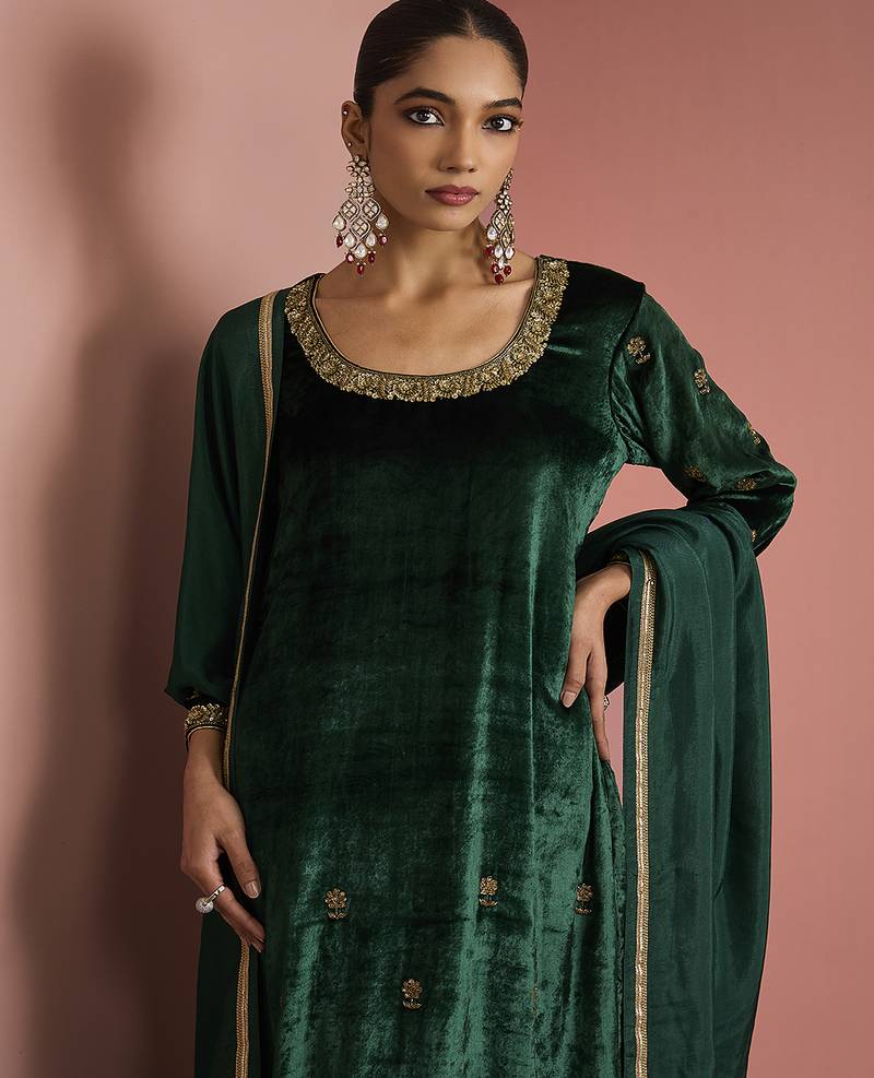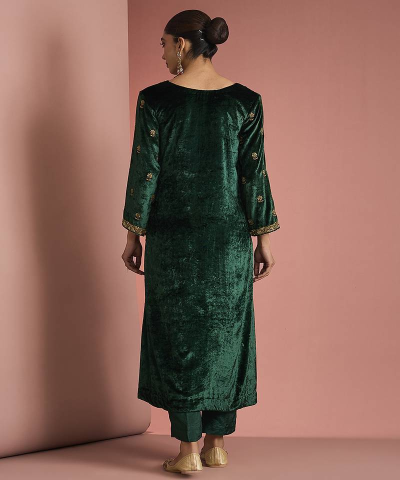 | Product Name | Dark Green Velvet Kurta Set | |