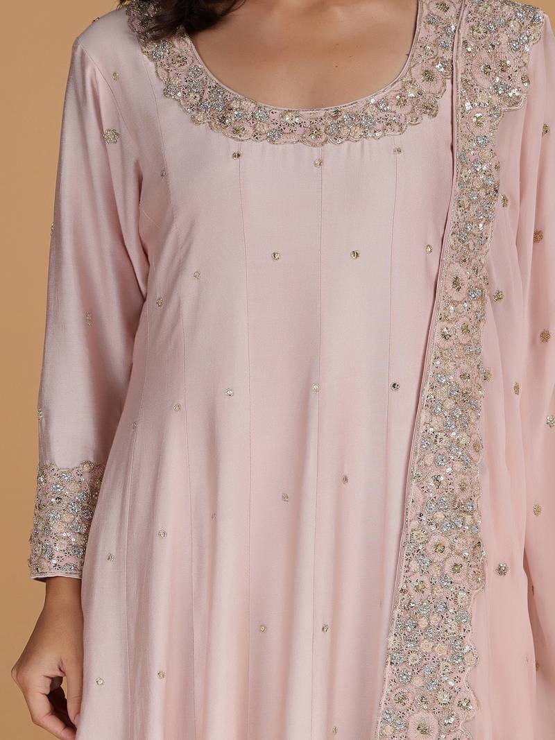 Light pink katan silk anarkali and dupatta stitched