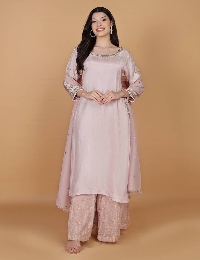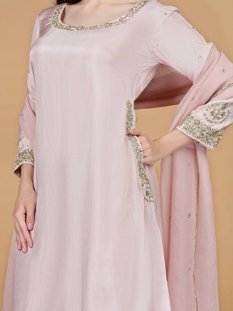 | Product Name | Light Pink Viscose Silk Pearl Sequins Dubka Work Sharara Set | |
