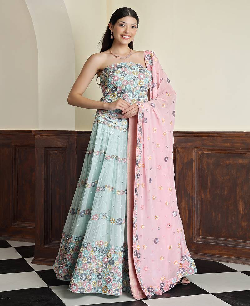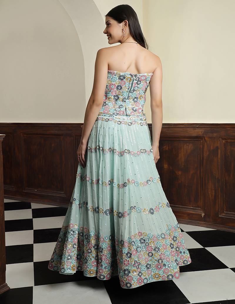 | Product Name | Light Sea Green Georgette Sequins And Bead Lehenga Set | |