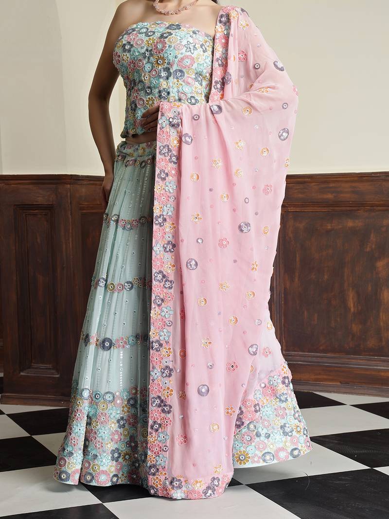Light sea green georgette sequins and bead lehenga set