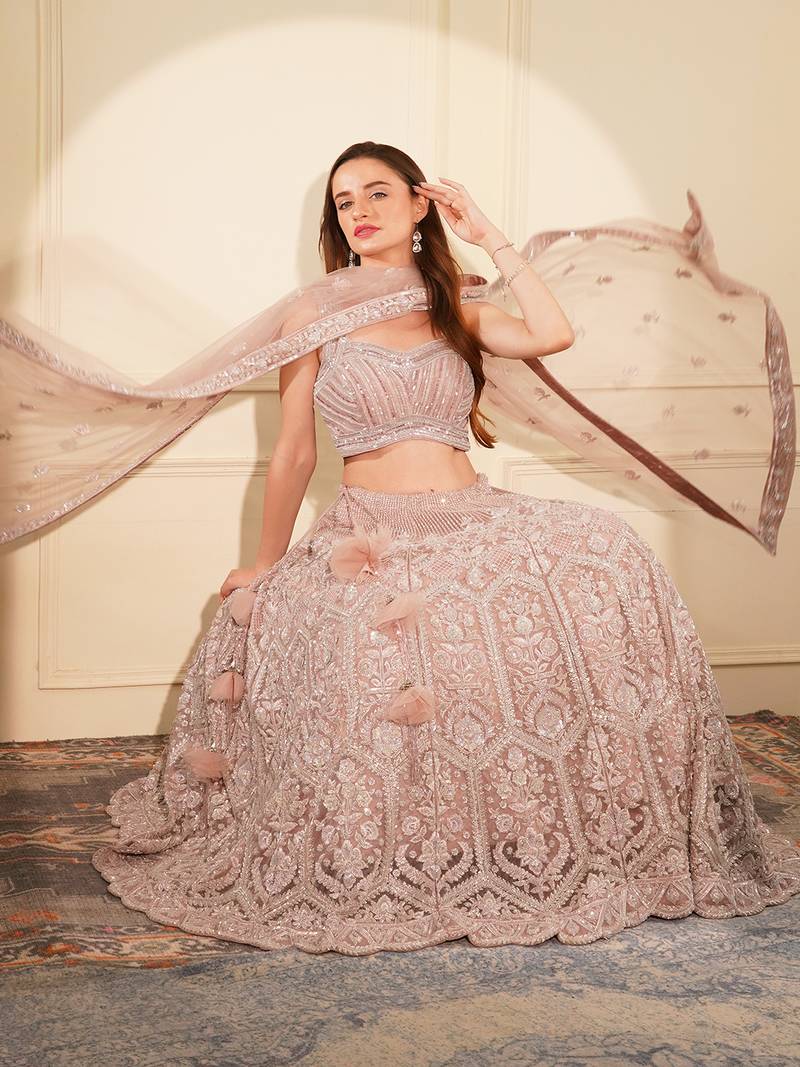 | Product Name | Onion Pink Double Net Heavy Beadwork Lehenga Set | |