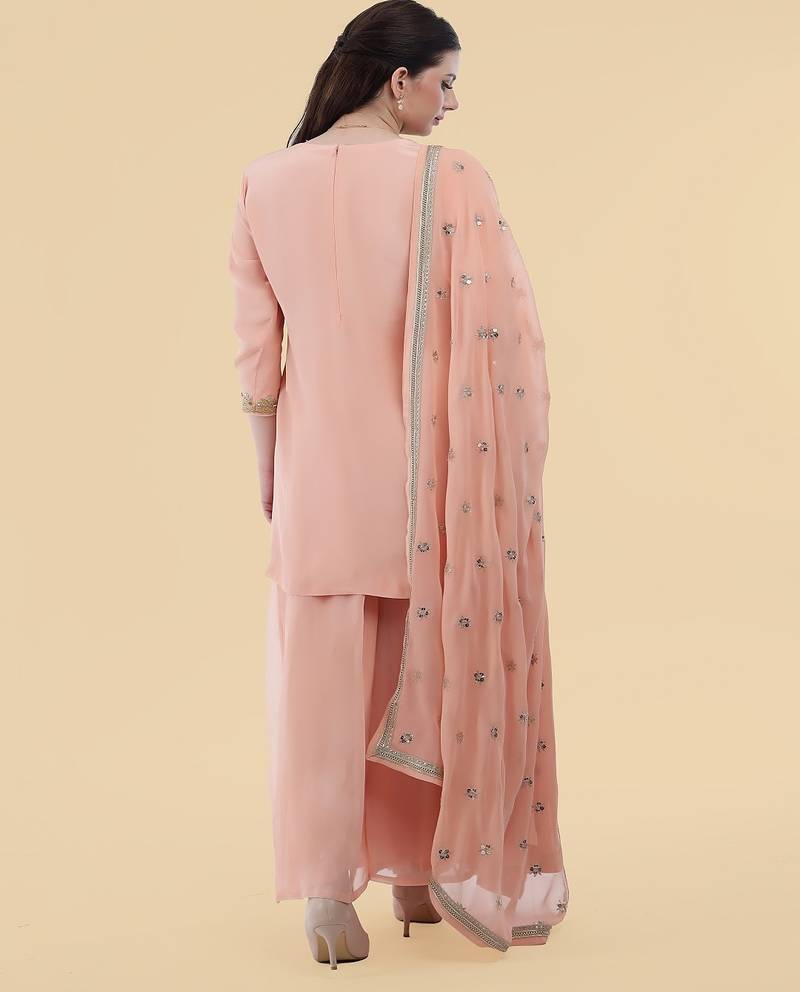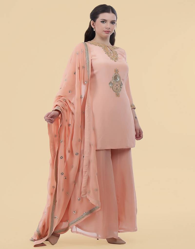 | Product Name | Peach Crepe Kurta Sharara Set | |