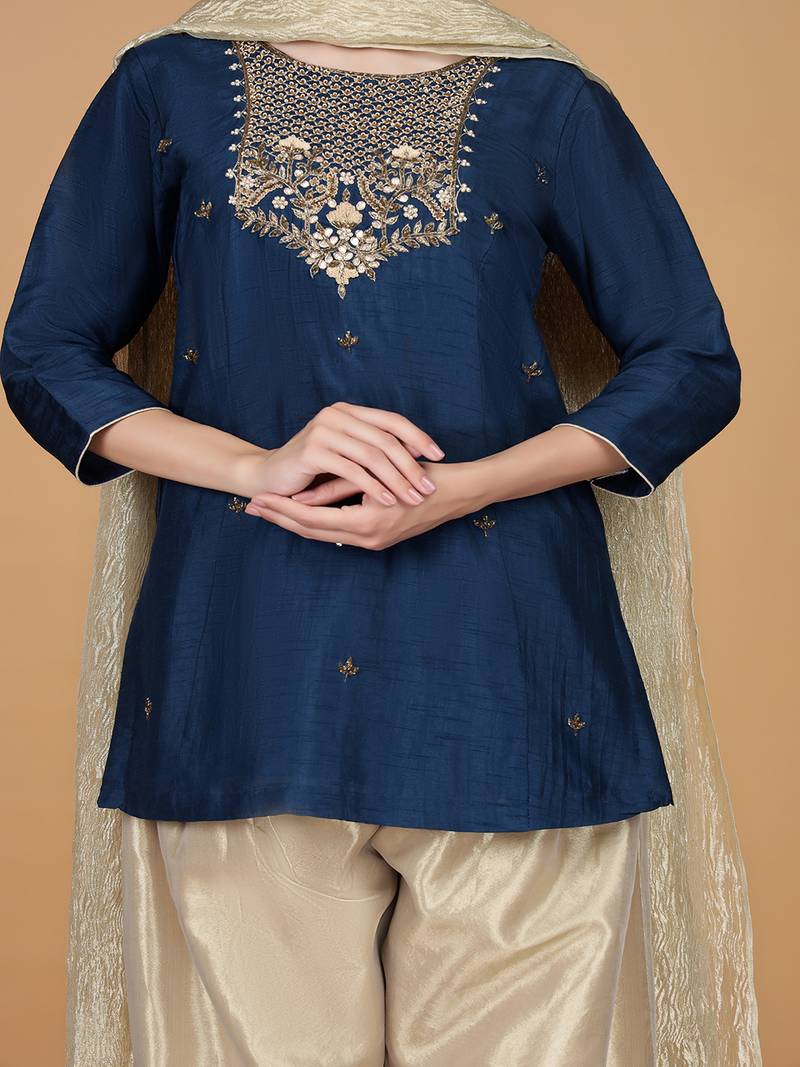 Blue tissue kurta salwar set stitched