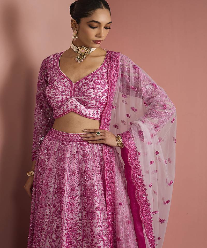 | Product Name | Pink Net Cutdana Work Lehenga Set With Blouse And Dupatta | |
