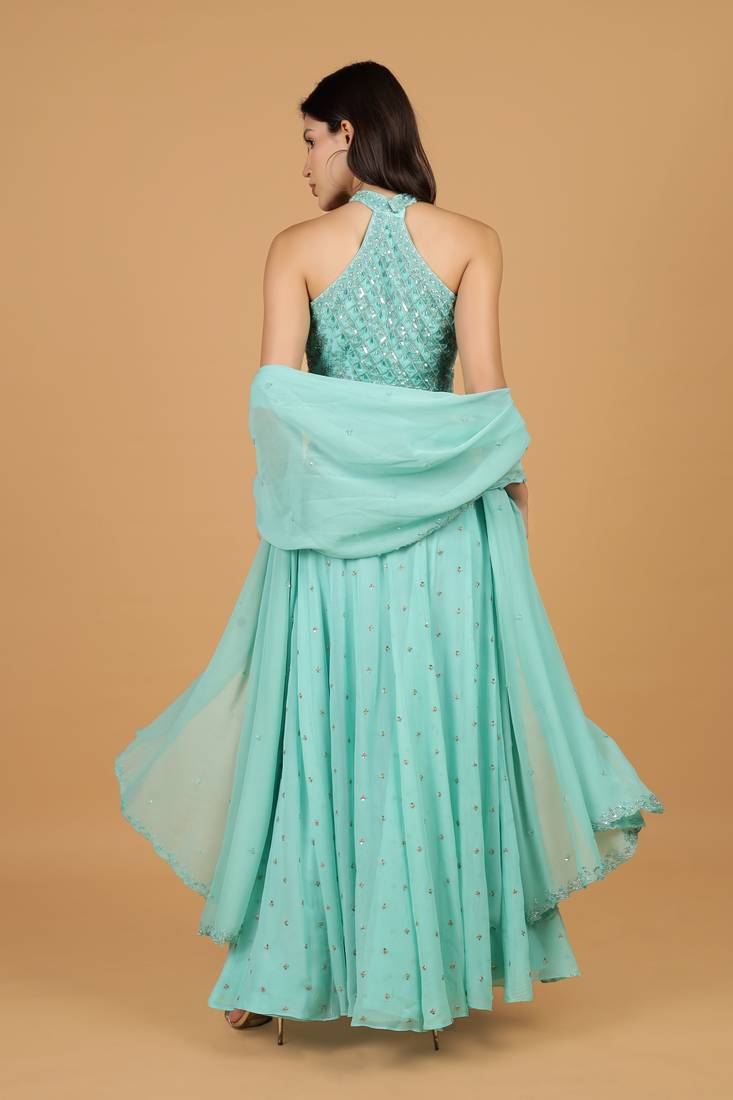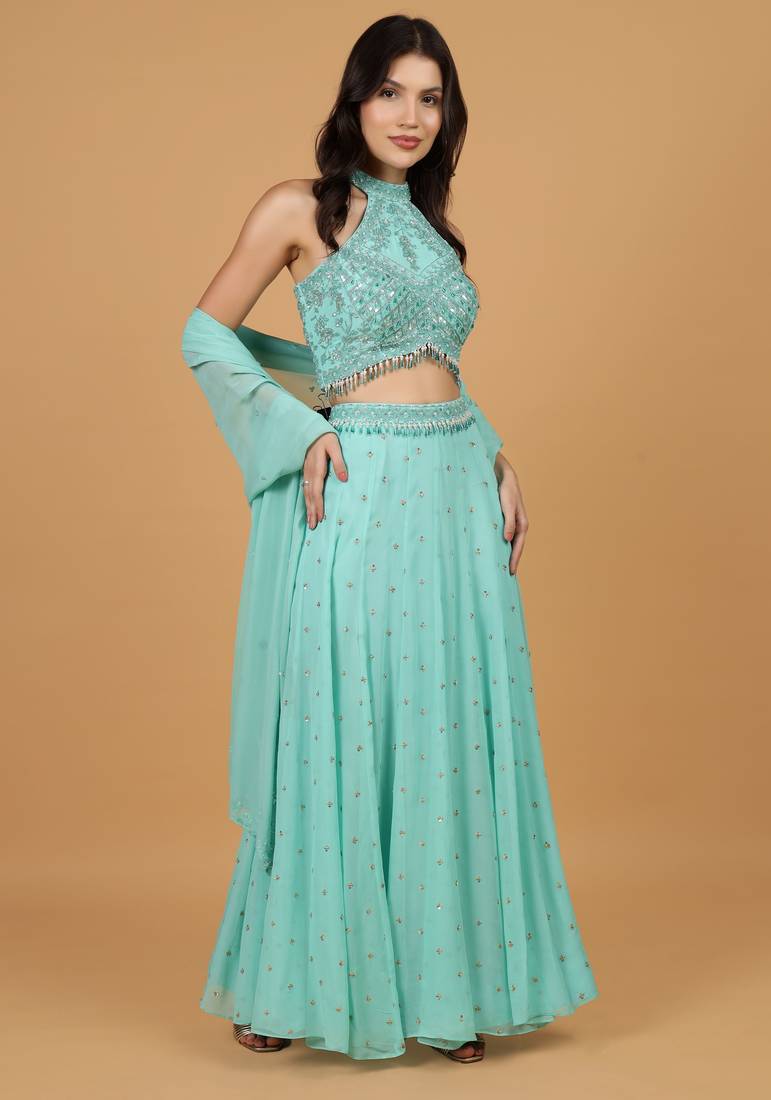 | Product Name | Sea Green Georggette Sequins Pearl Crystal Lehenga Set | |