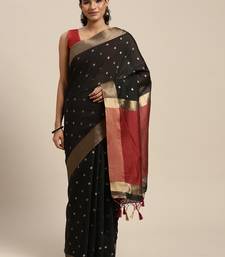 Black woven art silk saree with blouse