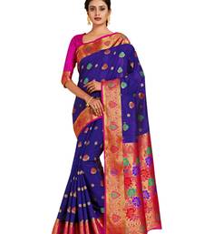 Blue hand woven art silk saree with blouse